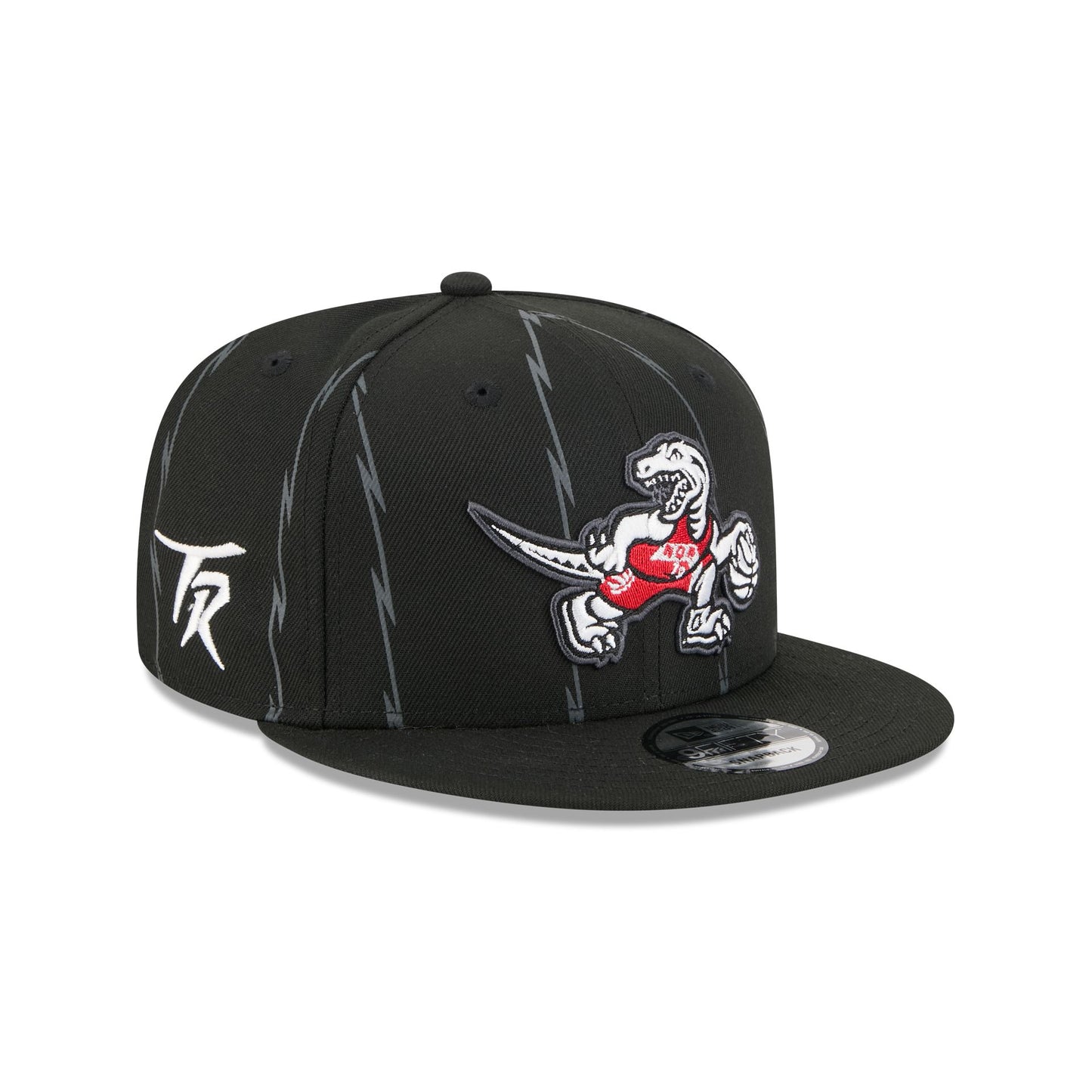 The Toronto Raptors 2025 City Edition 9FIFTY Snapback features an embroidered Raptors City Edition logo at the front panels with a logo at the right-wear side. Additional details include the NBA Logoman above an adjustable snapback closure at the rear and a gray undervisor.