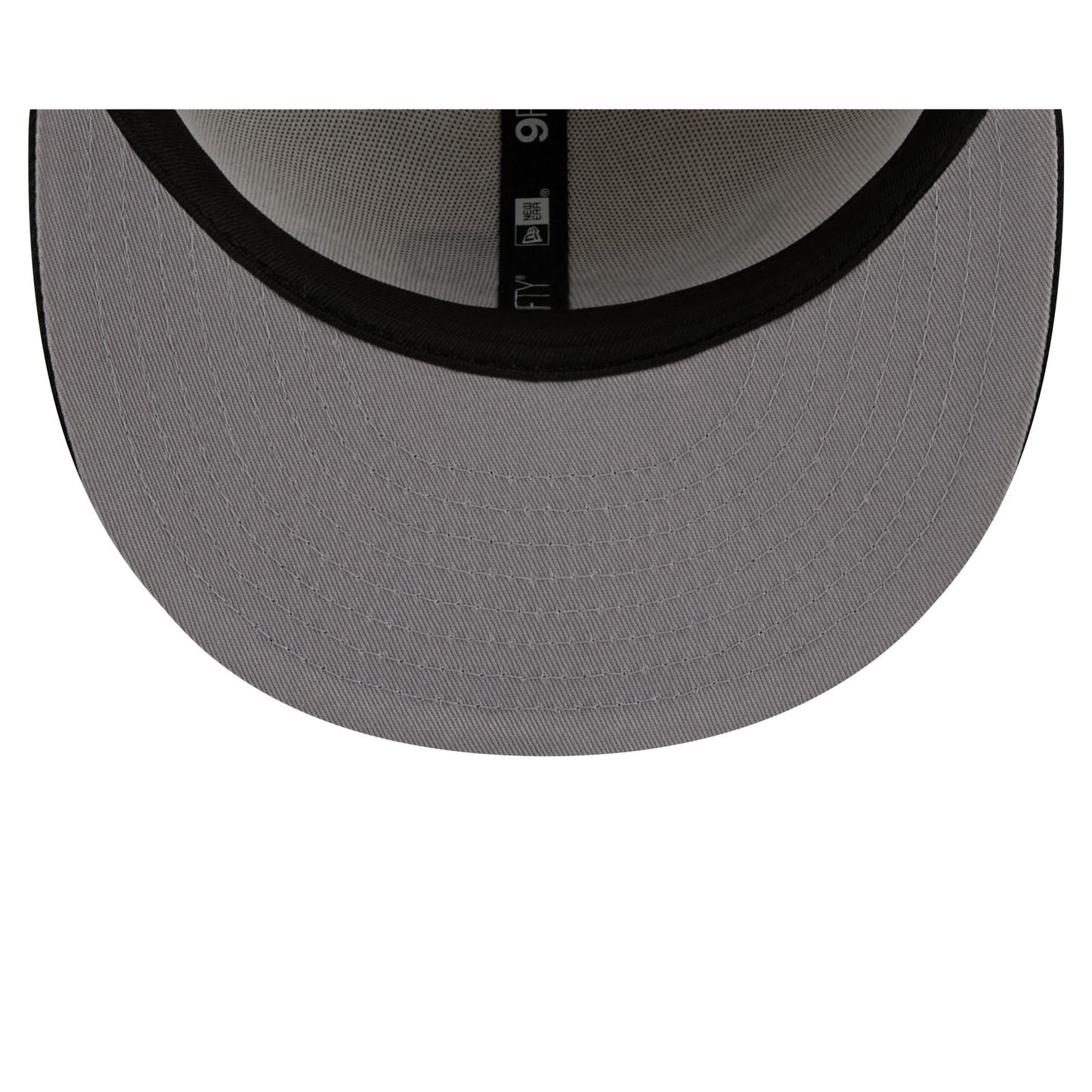 The Toronto Raptors 2025 City Edition Chrome White Corduroy 9FIFTY Snapback features an embroidered Raptors City Edition logo at the front panels with a City Edition jock tag stitched at the right-wear side. Additional details include a corduroy fabrication, the NBA Logoman above an adjustable snapback closure at the rear, and a gray undervisor.