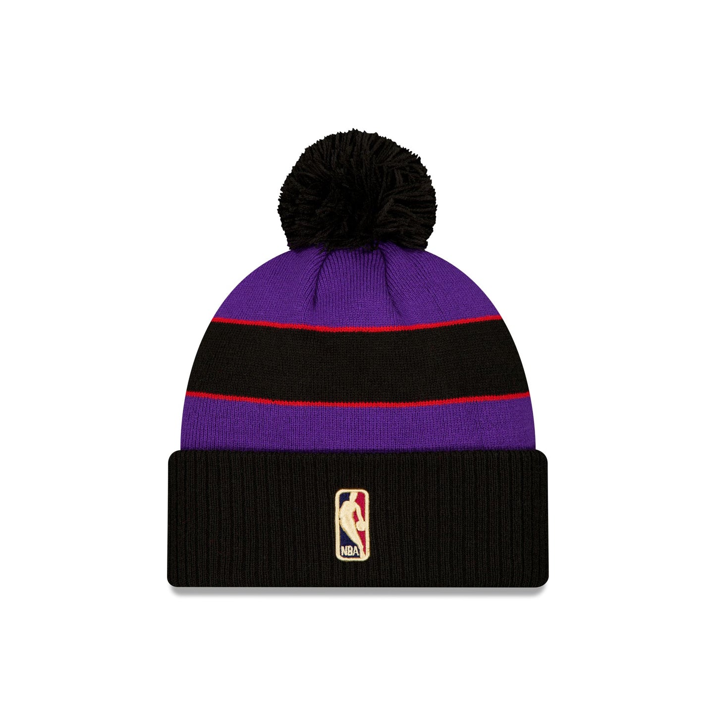 The Toronto Raptors Classic Edition Black Pom Knit features an embroidered Raptors logo at the front cuff with the NBA Logoman at the rear and a one-time removable pom.