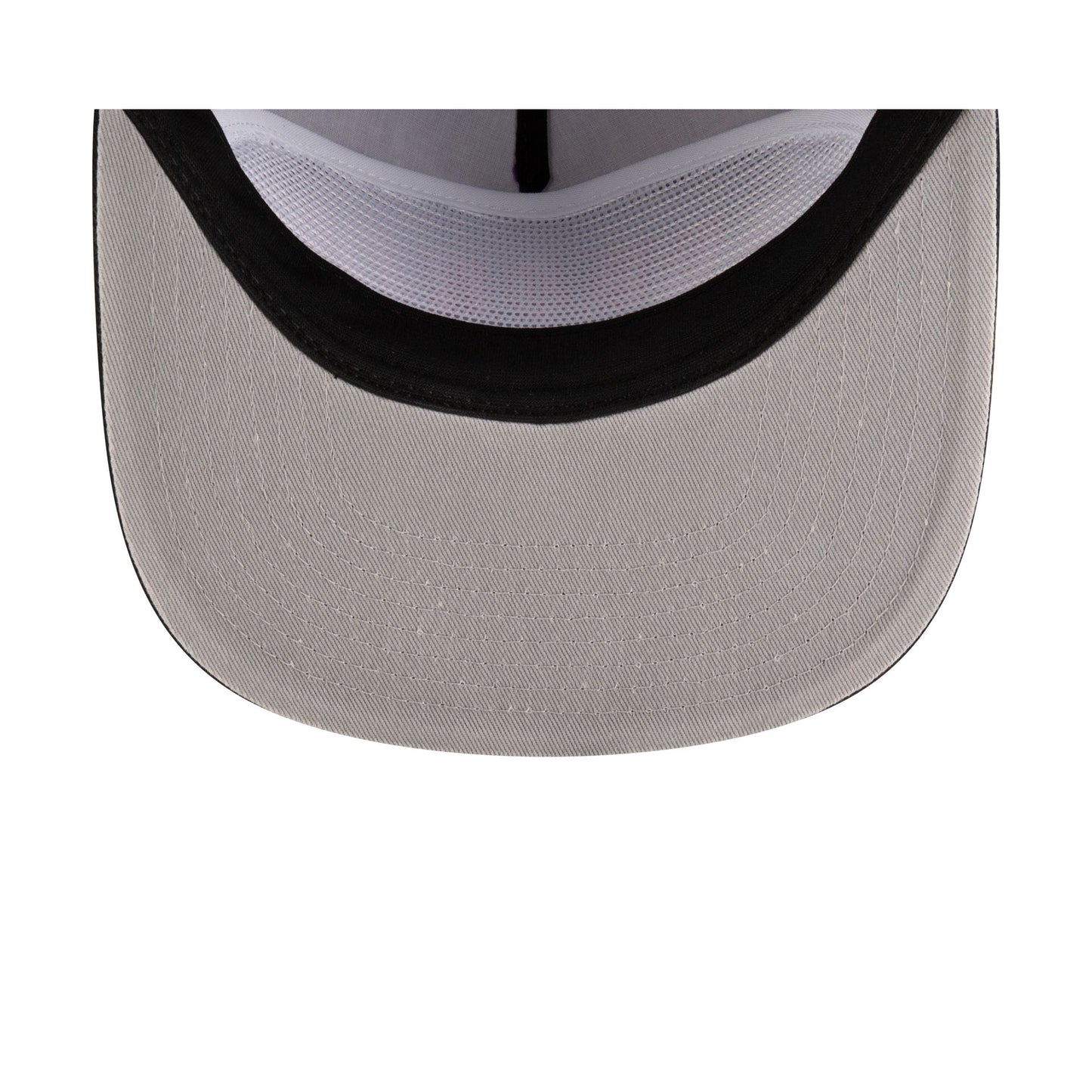 The Toronto Raptors Classic Edition Golfer features an embroidered Raptors logo at the front panels with a team logo at the right-wear side. Additional details include a mesh back, a snapback closure at the rear, and a gray undervisor.