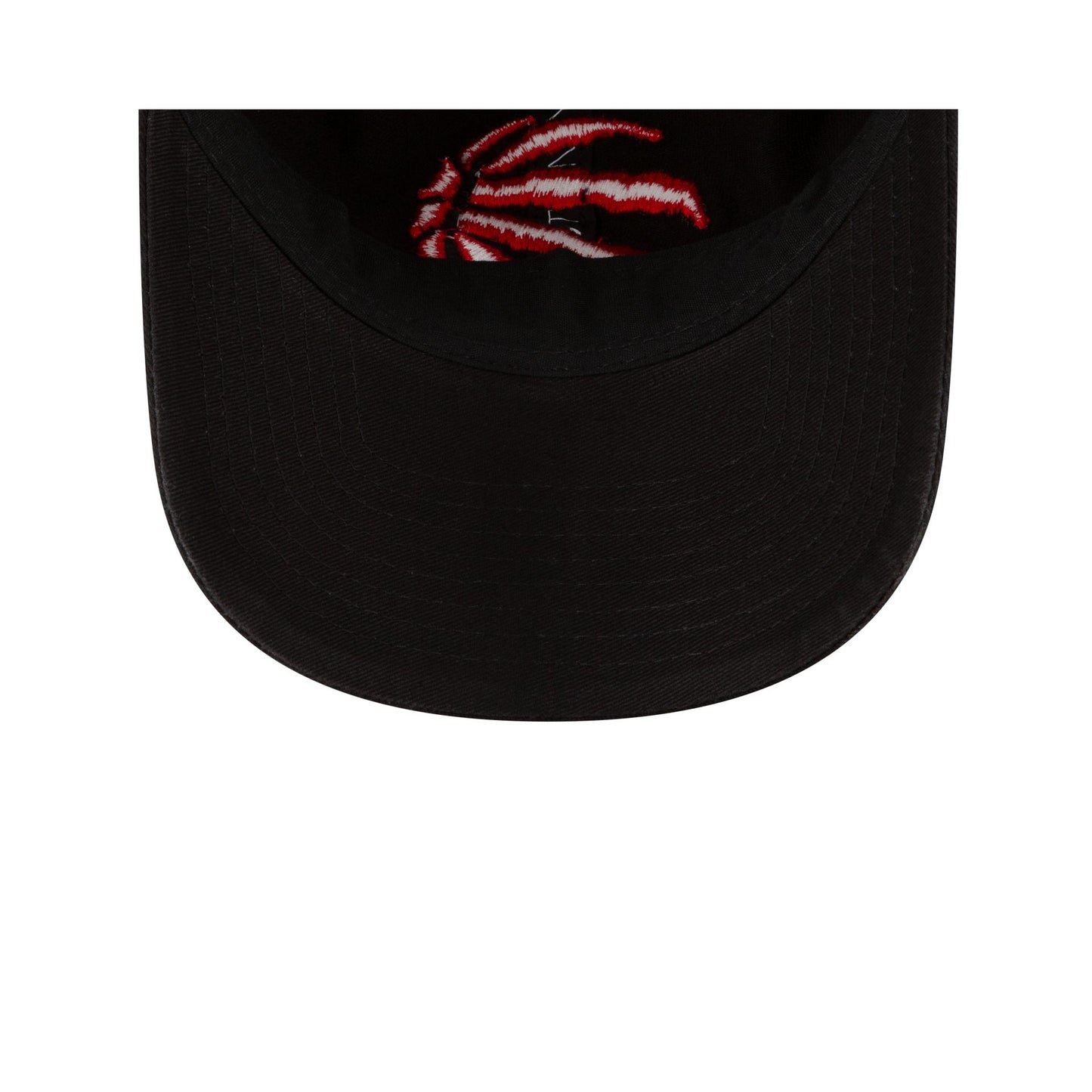 The Toronto Raptors Core Classic Black 9TWENTY Adjustable Cap features an embroidered Raptors logo at the front panels with a team tag on an adjustable D-Ring closure at the rear.