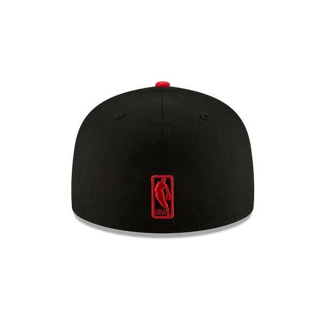 The Toronto Raptors Two Tone 59FIFTY Fitted Cap features an embroidered Raptors logo at the front panels with a team color NBA logo at the rear.