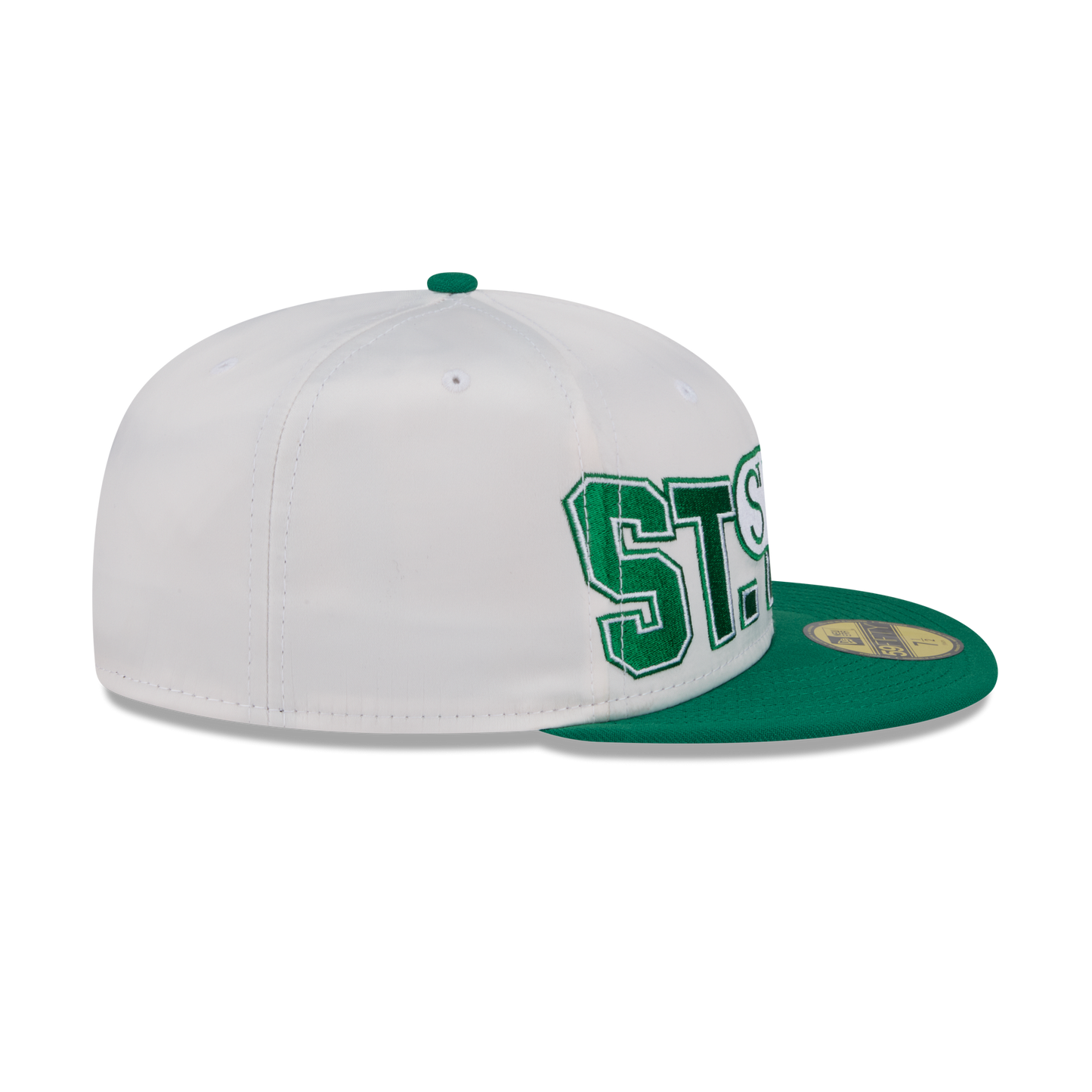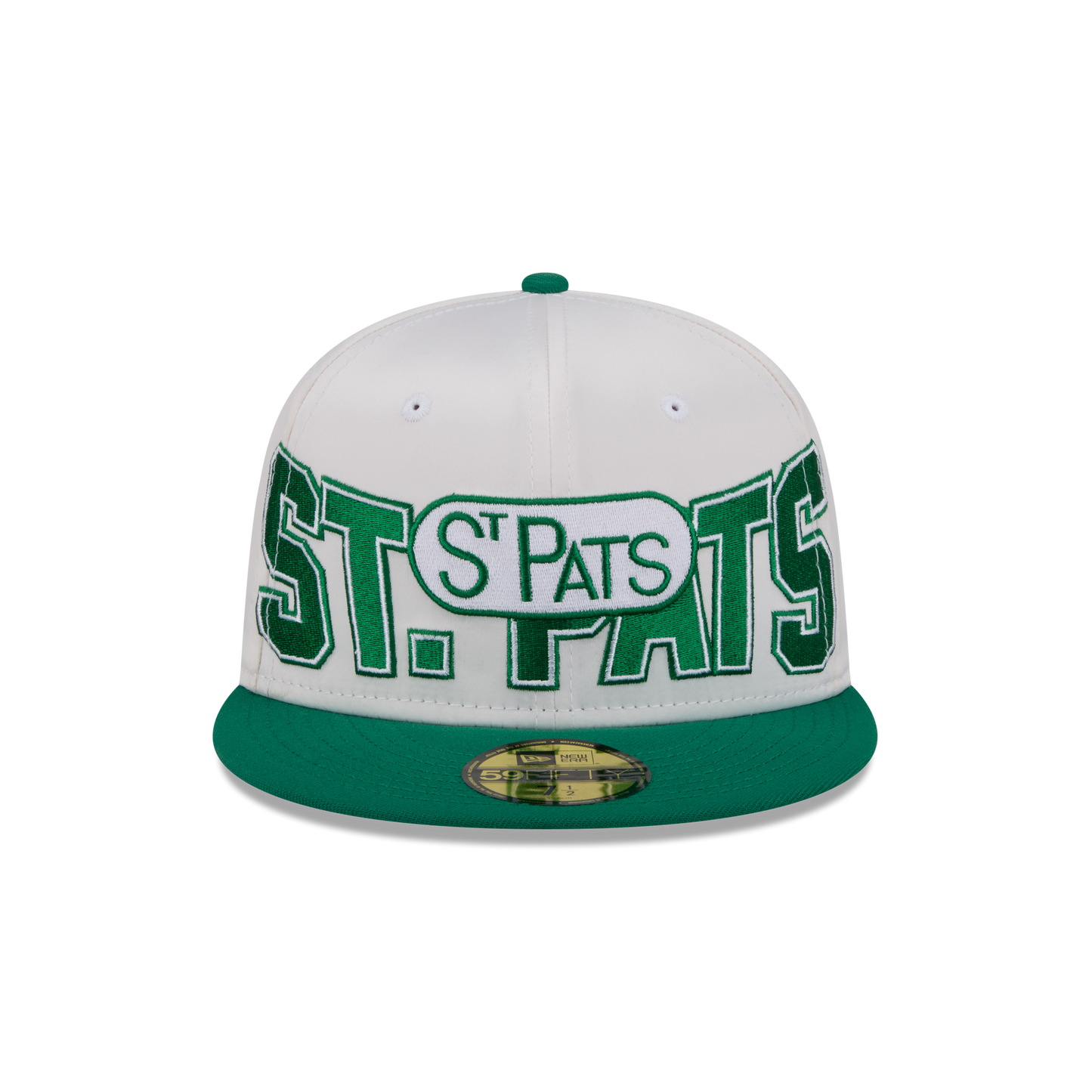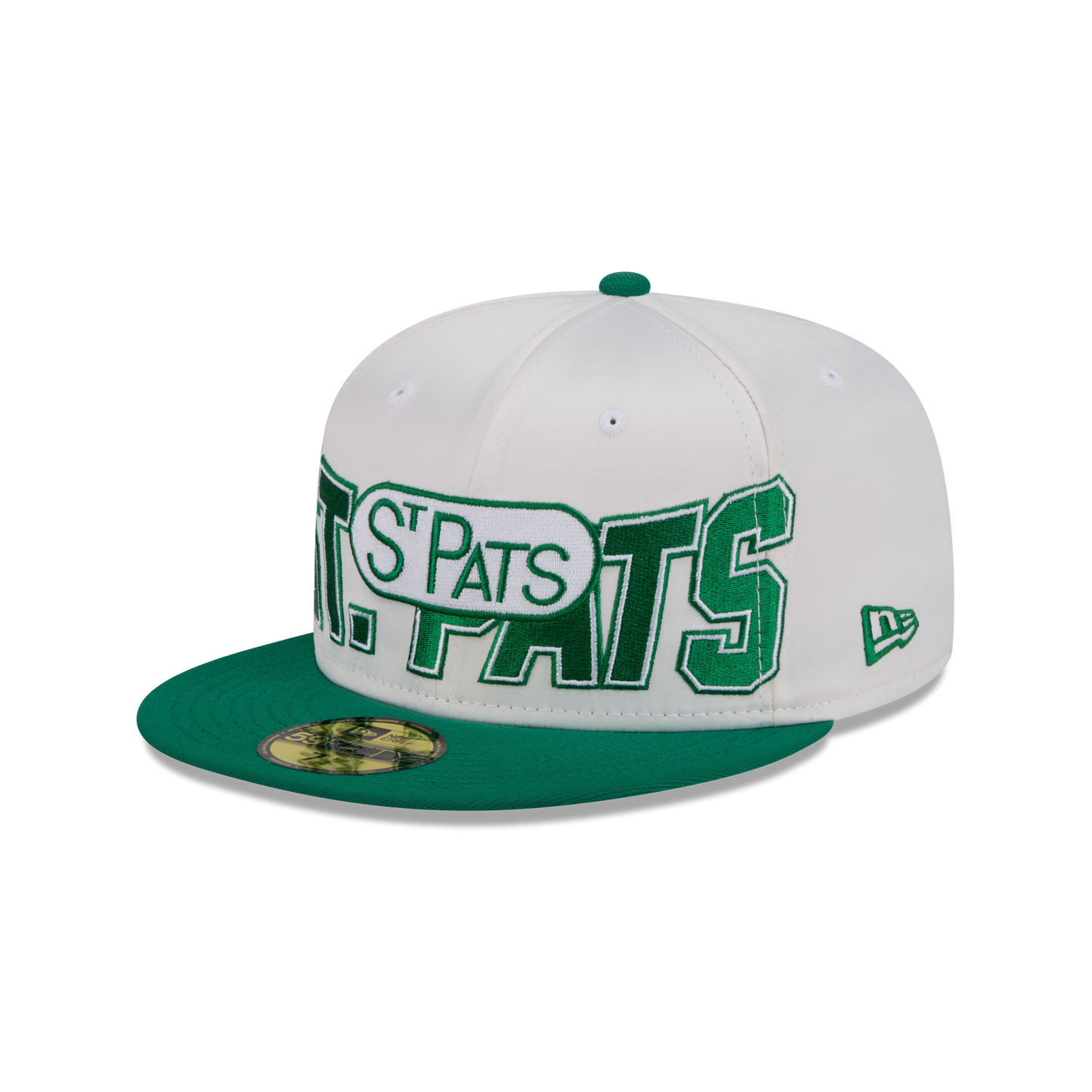 The Toronto St. Patricks Bold Satin 59FIFTY Fitted Cap features an embroidered satin St. Patricks Historic graphic at the front panels with a satin fabrication throughout. Additional details include a matching Vintage Hockey logo at the rear and a gray undervisor.
