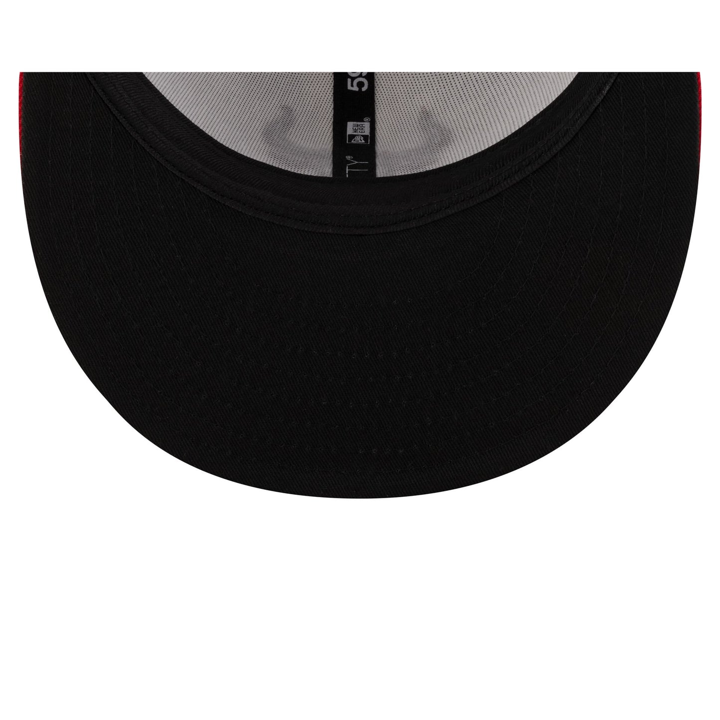 The Toros de Tijuana LMB 100th Anniversary Home 59FIFTY Fitted Cap features an embroidered Toros logo at the front panels with a LMB 100th Anniversary patch at the rear, an alternate team logo at the right-wear side, and black undervisor.