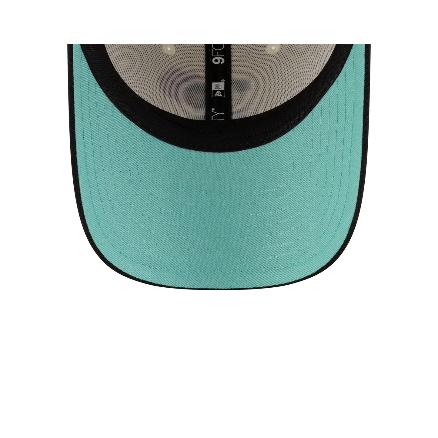 The Toros de Tijuana Two-Tone Rose 9FORTY Snapback features an embroidered Toros logo and roses at the front panels with a matching team wordmark at the right-wear side. Additional details include an alternate team wordmark above a snapback closure at the rear with a black visor and a mint undervisor.