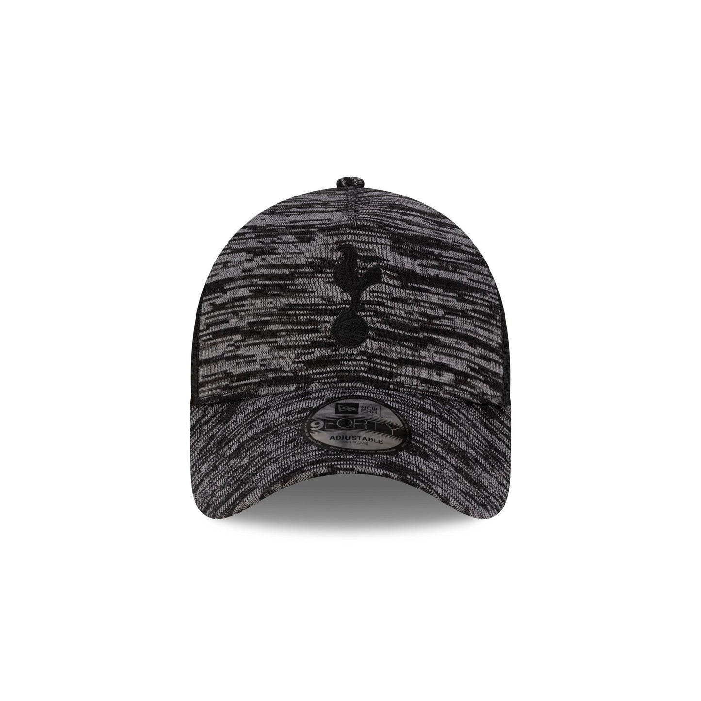 The Tottenham Hotspur FC Marl Black 9FORTY A-Frame Trucker features an embroidered Tottenham logo at the front panel with an adjustable snapback closure at the rear with a marl fabrication and a black undervisor.
