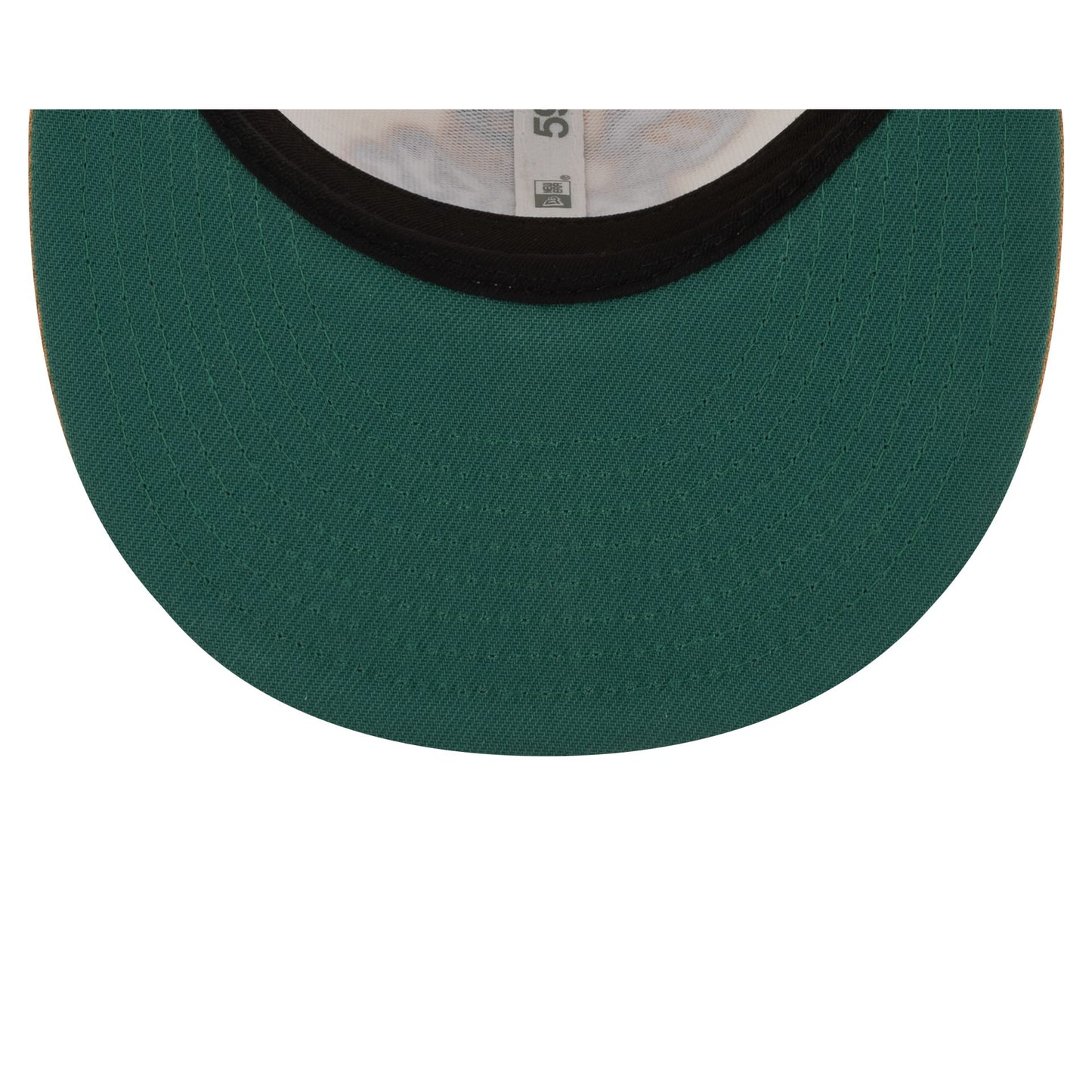 The Tulsa Drillers Oktoberfest 59FIFTY Fitted Cap features an embroidered Oktoberfest-themed Drillers logo at the front panels with a matching MiLB Logoman at the rear and a green undervisor.