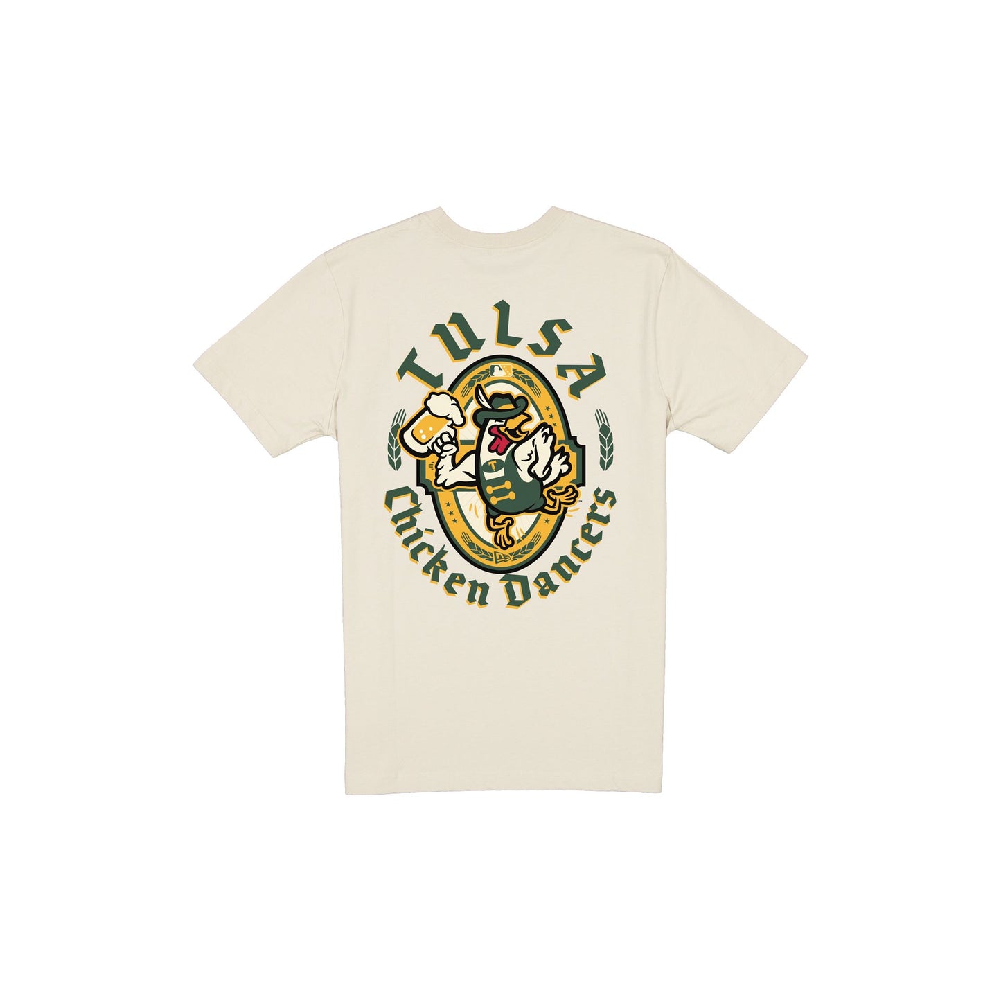 The Tulsa Drillers Oktoberfest Chrome White T-Shirt features a screen-printed Oktoberfest-themed Drillers graphic at the front and back.