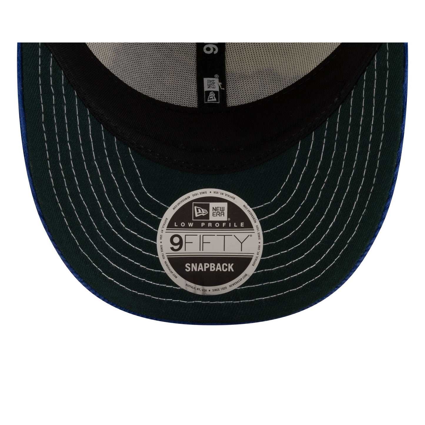 The Tyler Herro x Kentucky Wildcats Chrome Corduroy Low Profile 9FIFTY Snapback features an embroidered Wildcats National Champions graphic at the front panels against a corduroy fabrication throughout. Additional details include a snapback closure at the rear and a green undervisor.