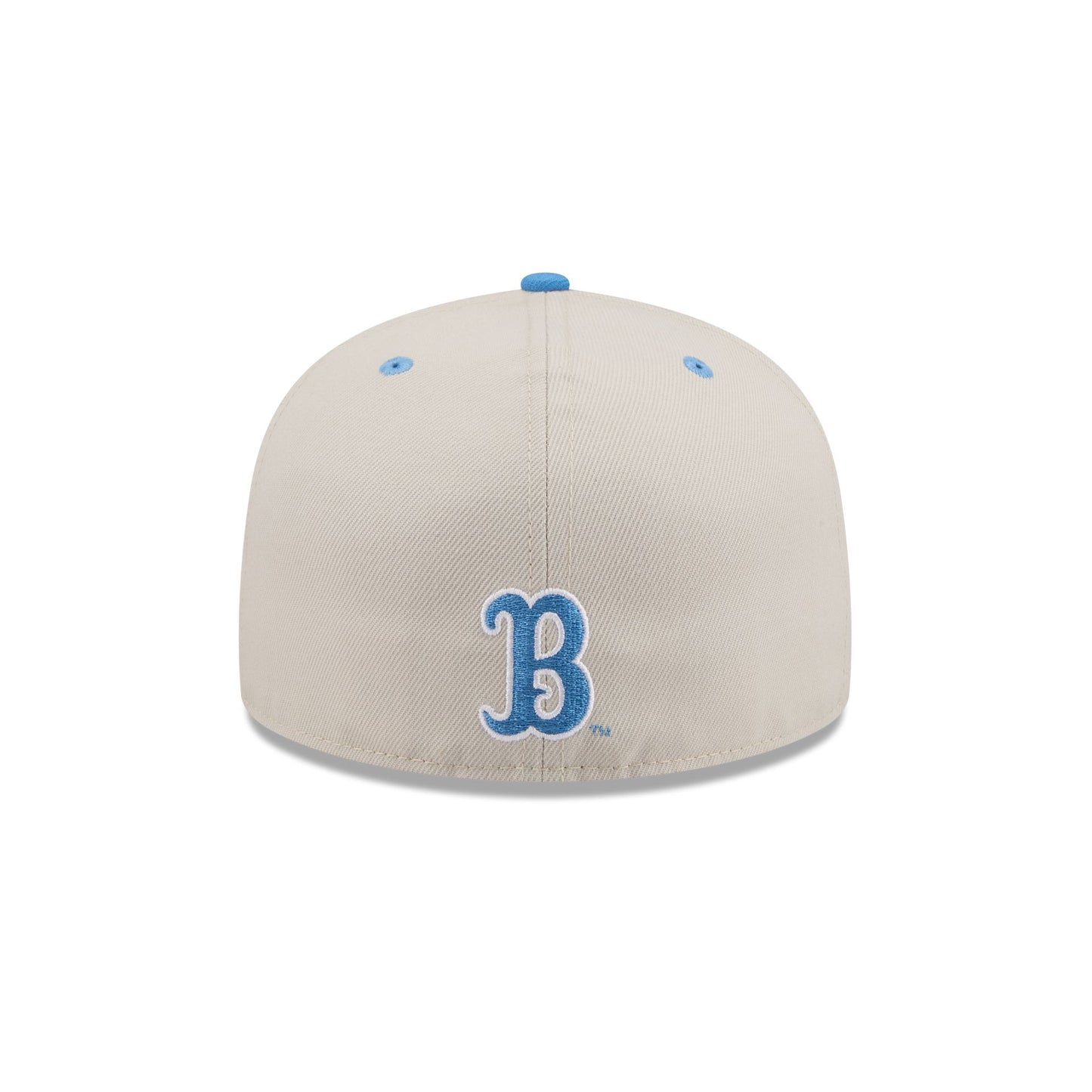 The UCLA Bruins Collegiate Two-Tone Chrome 59FIFTY Fitted Cap features an embroidered Bruins logo at the front panels with an alternate team logo at the rear. Additional details include a 1995 NCAA Final Four patch at the right-wear side with a blue visor and a gray undervisor.