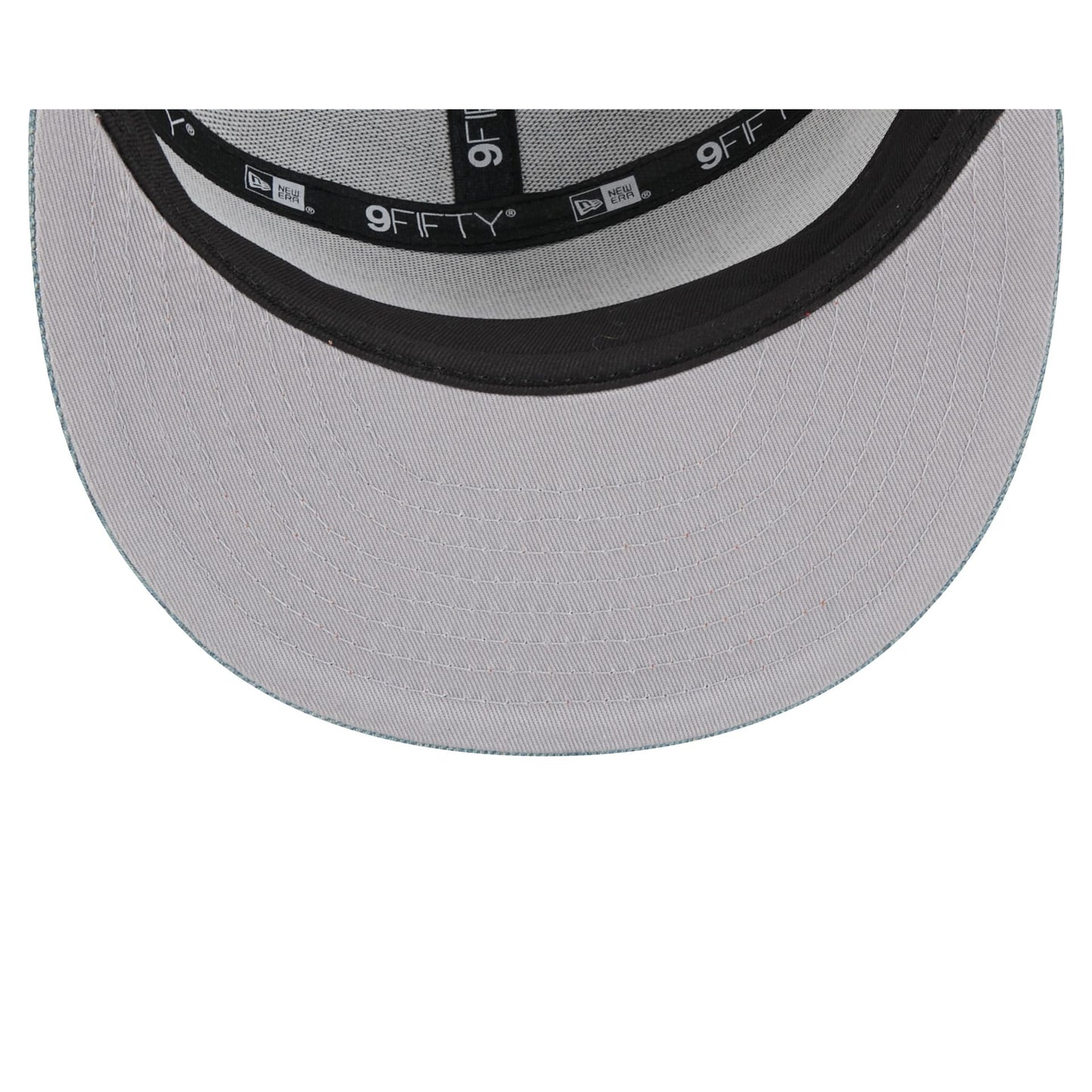 The UCLA Bruins Denim 9FIFTY Split Panel Trucker Hat features an embroidered Bruins logo at the front panels with an adjustable snapback closure at a mesh rear.