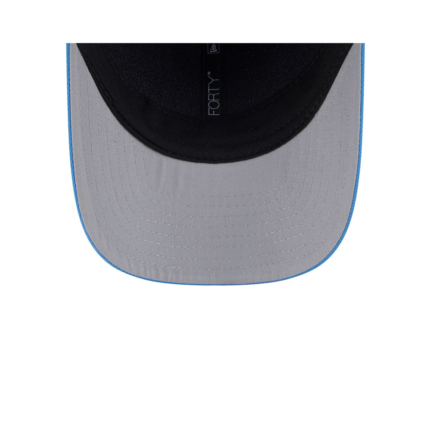 The UCLA Bruins Team 9FORTY M-Crown Snapback features an embroidered Bruins logo at the front panels with an alternate team logo above a snapback closure at the rear and a gray undervisor.