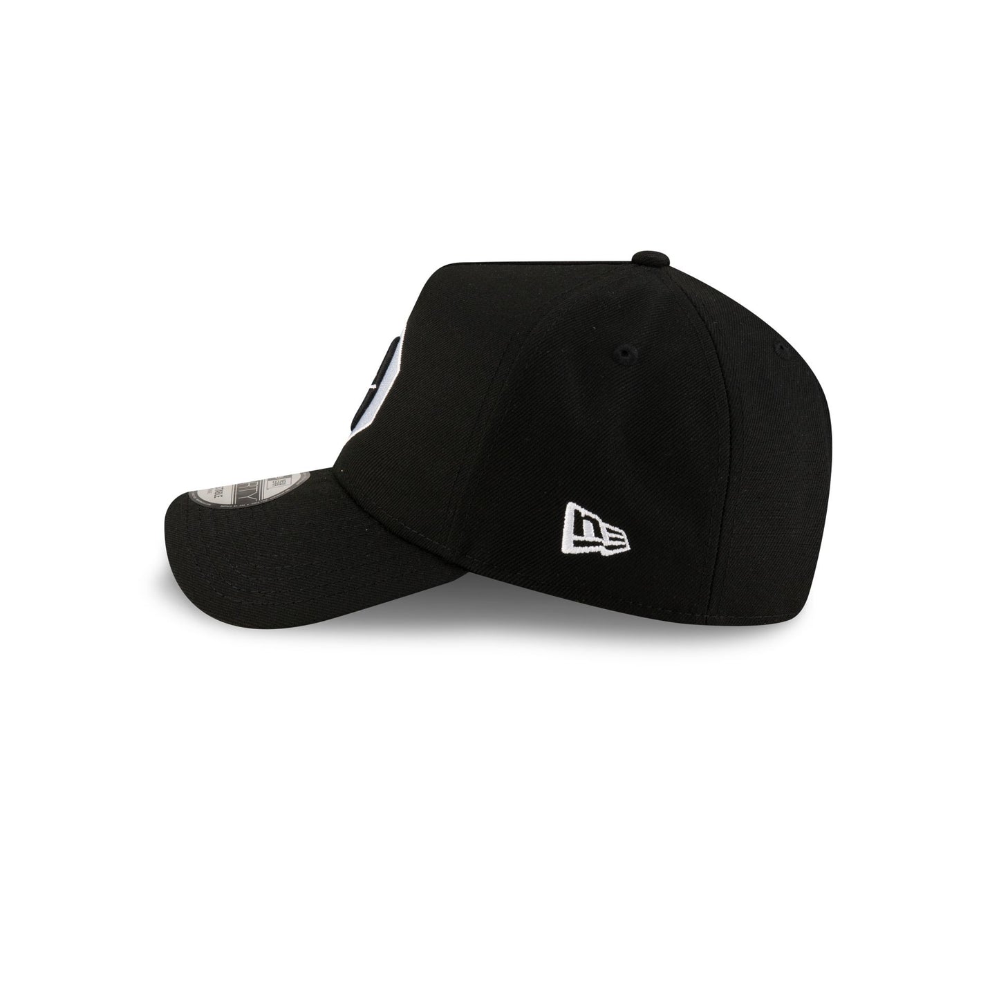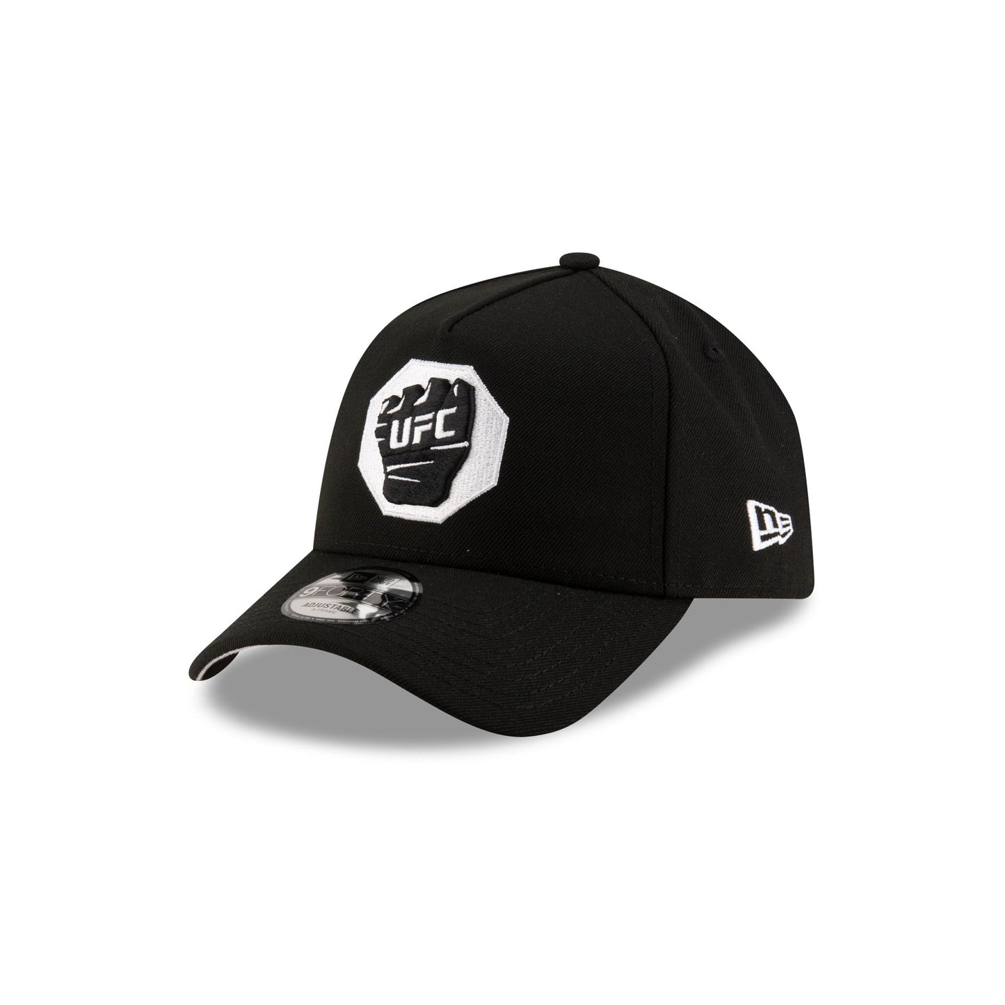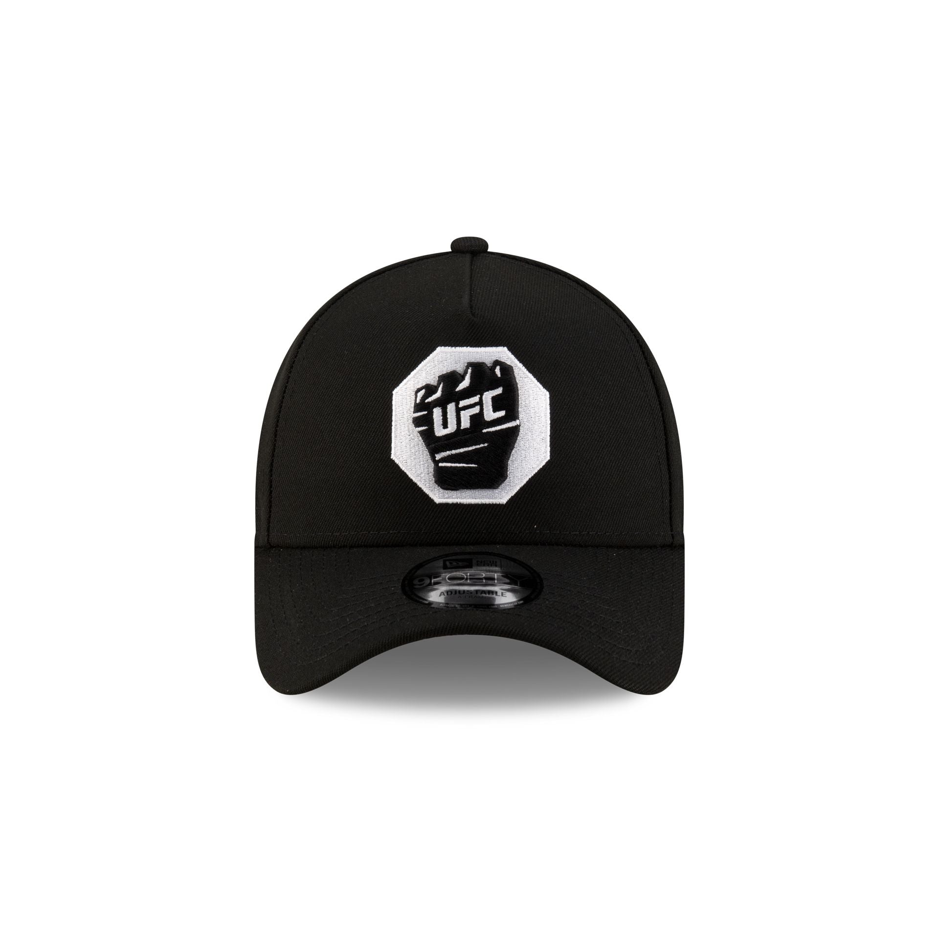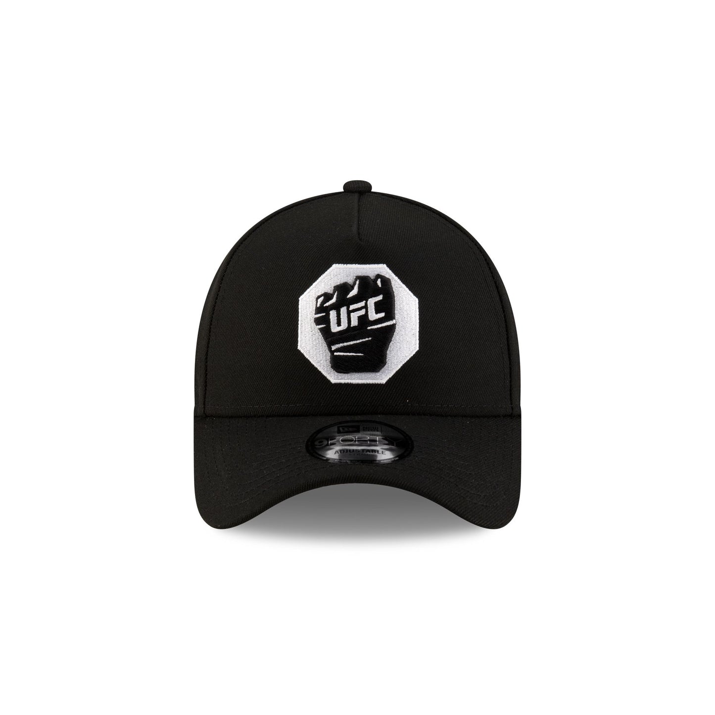 The UFC Mexico Black Glove 9FORTY A-Frame Snapback features an embroidered UFC glove logo at the front panels with a Mexico flag at the right-wear side. Additional details include a snapback closure at the rear and a gray undervisor.