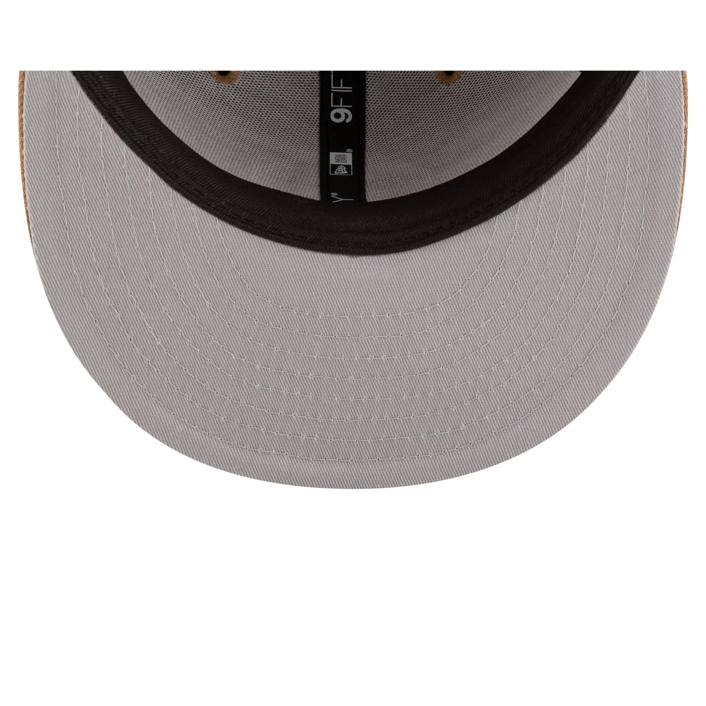 The UFC Mexico Khaki Glove 9FIFTY Snapback features an embroidered UFC glove logo at the front panels with a Mexican flag at the right-wear side. Additional details include a snapback closure at the rear and a gray undervisor.