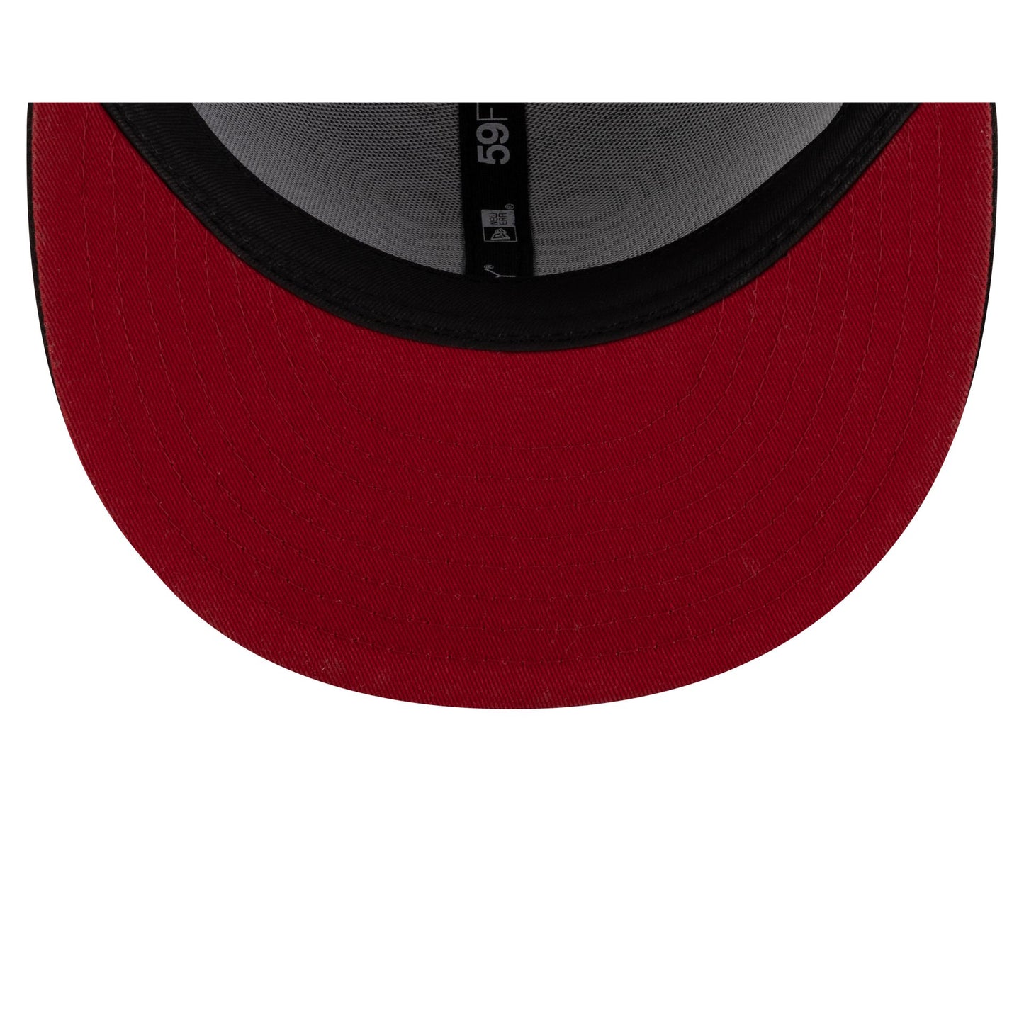 The UFC Zhang Weili 59FIFTY Fitted Cap features an embroidered Zhang Weili UFC wordmark at the front panels with an embroidered graphic at the right-wear side. Additional details include a UFC Glove logo at the rear and a red undervisor.
