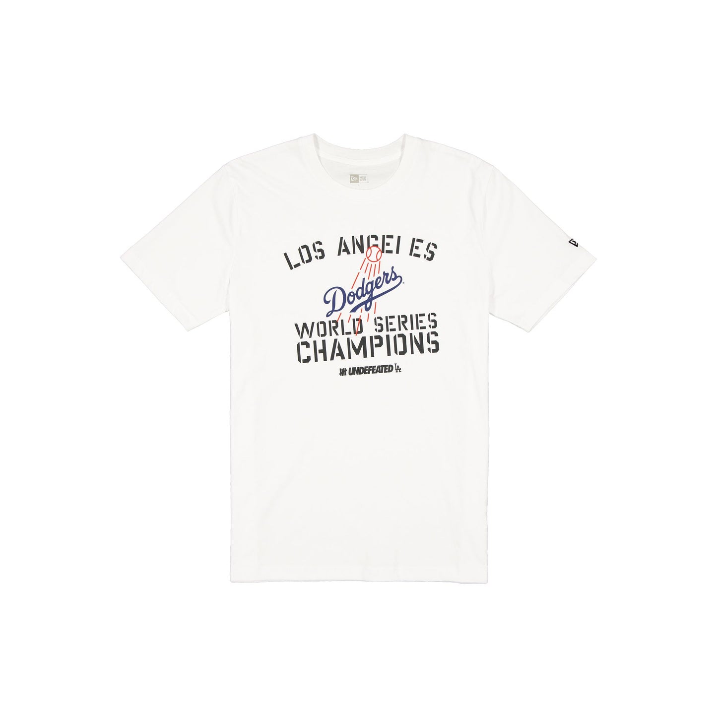 The Undefeated x Los Angeles Dodgers 2024 World Series Champions White T-Shirt features a screen-printed Dodgers graphic at the front.