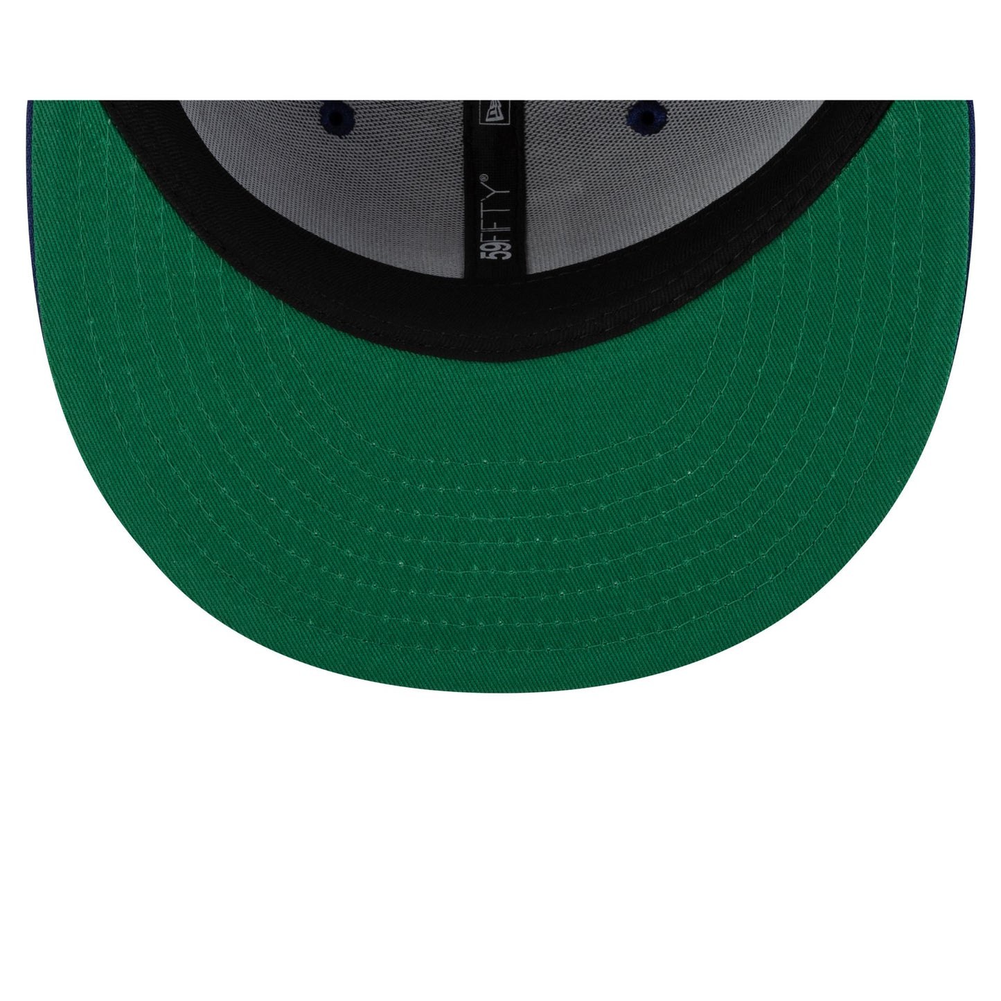 The Undefeated x Los Angeles Dodgers Stacked 59FIFTY Fitted Cap features an embroidered Dodgers Undefeated graphic at the front with a patch at the right-wear side and a matching MLB Batterman logo at the rear.