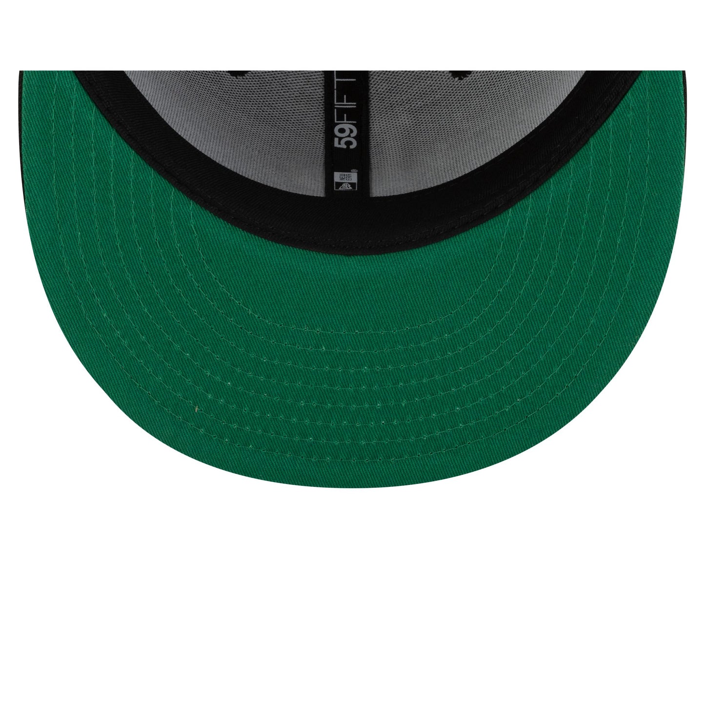 The Undefeated x Los Angeles Dodgers Stacked Black 59FIFTY Fitted Cap features an embroidered Dodgers Undefeated graphic at the front with a patch at the right-wear side and a matching MLB Batterman logo at the rear.