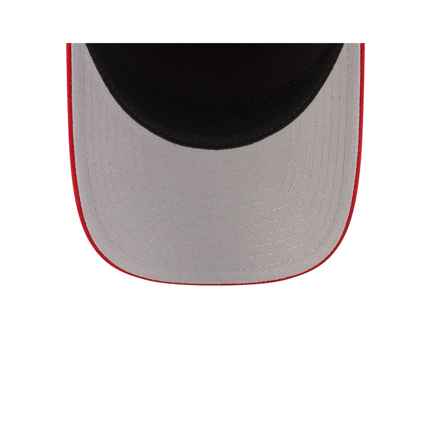 The U.S. Soccer Men's National Team Americana Flag Red 9FORTY M-Crown A-Frame Snapback features an embroidered U.S. Soccer Men's National Team logo at the front panel with a USA flag font wordmark at the right-wear side, an adjustable snapback closure at the rear, and a gray undervisor.
