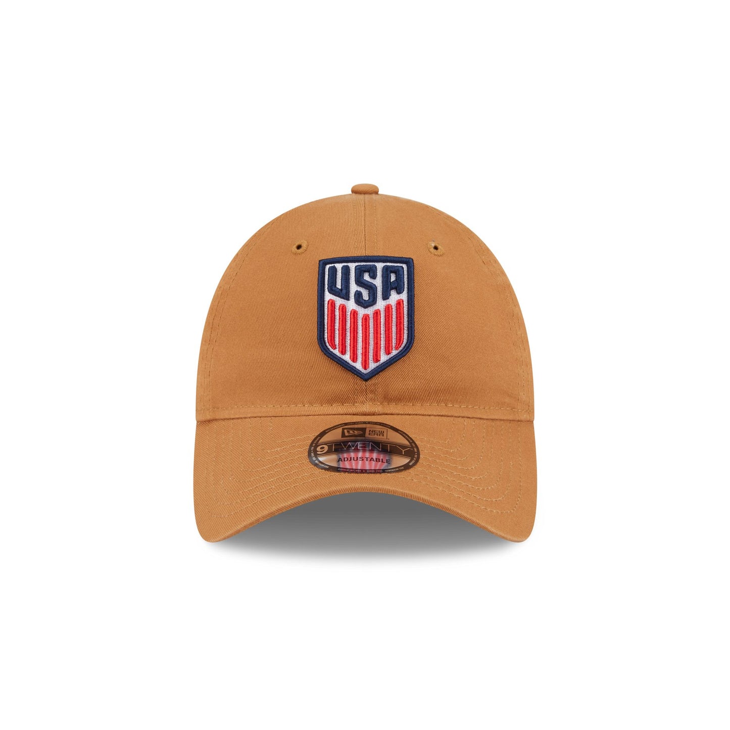 The U.S. Soccer Men's National Team Bronze 9TWENTY Adjustable Cap features an embroidered U.S. Soccer logo at the front panel with a matching woven team logo tag at an adjustable D-Ring closure at the rear.