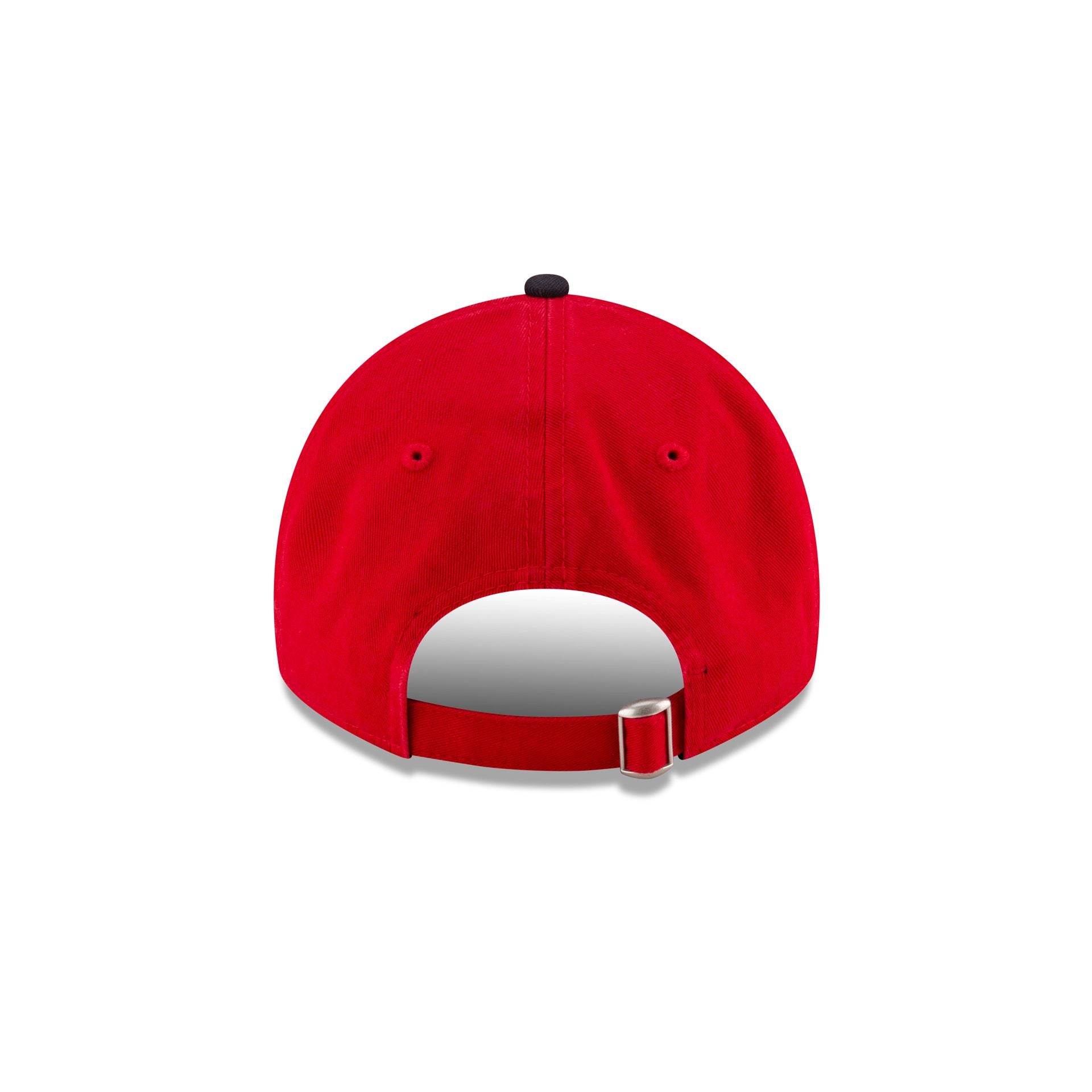 The U.S. Soccer Red 9TWENTY Adjustable Cap features an embroidered US Women's National Soccer Team logo at the front panels with a navy undervisor and an adjustable D-Ring closure at the rear.