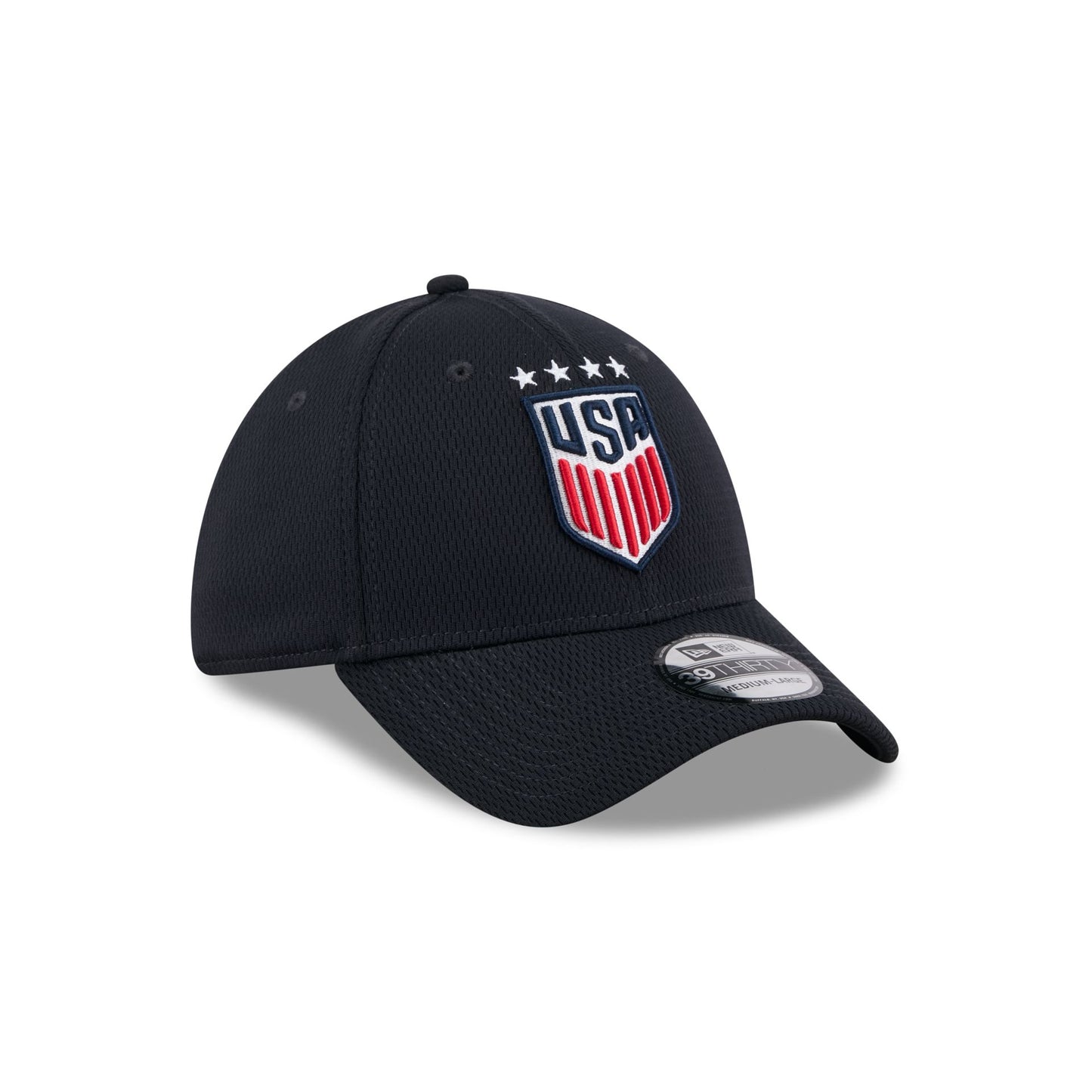 The U.S. Soccer Women's National Team Rear Wordmark 39THIRTY Stretch Fit Cap features an embroidered U.S. Soccer logo at the front panels with a wordmark at the rear.