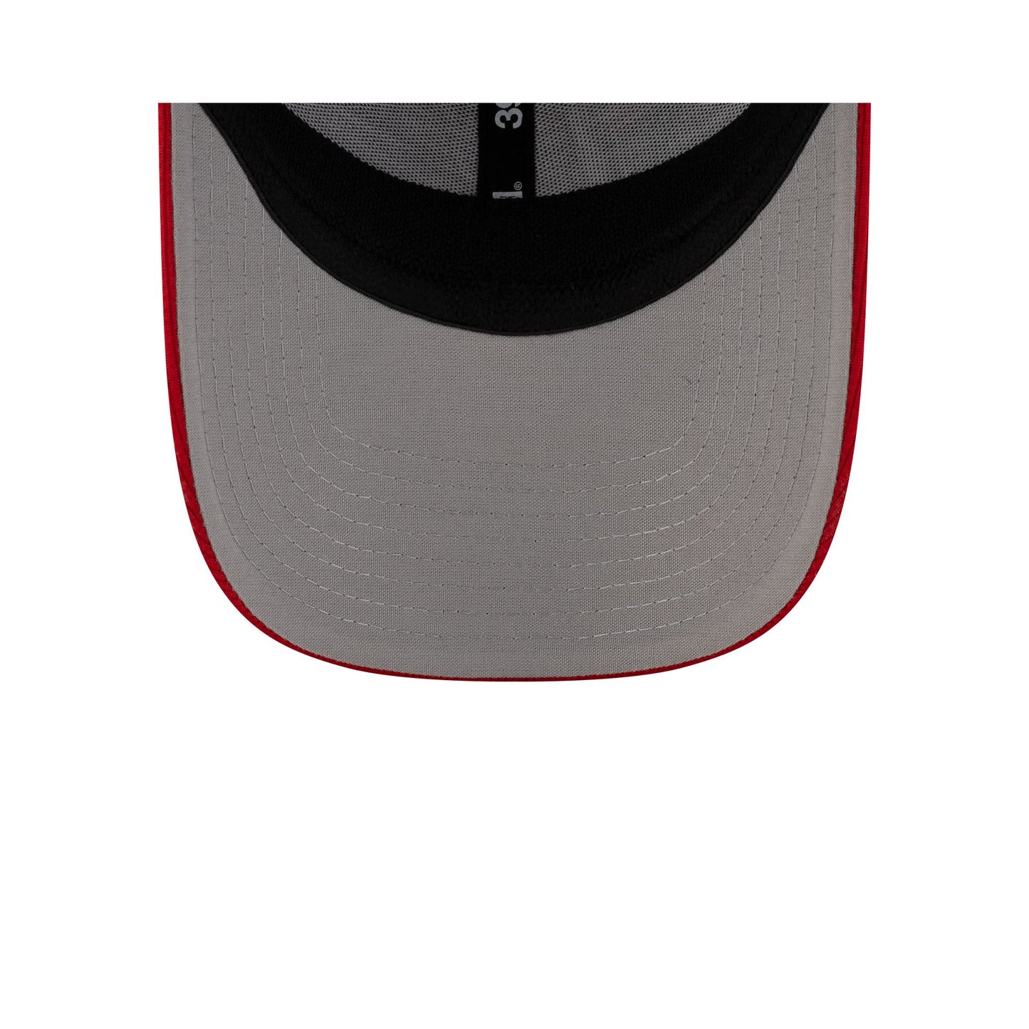 The USA Baseball 2025 Batting Practice 39THIRTY Stretch Fit Cap features an embroidered USA Baseball logo at the front panels with an American flag at the rear and a gray undervisor.