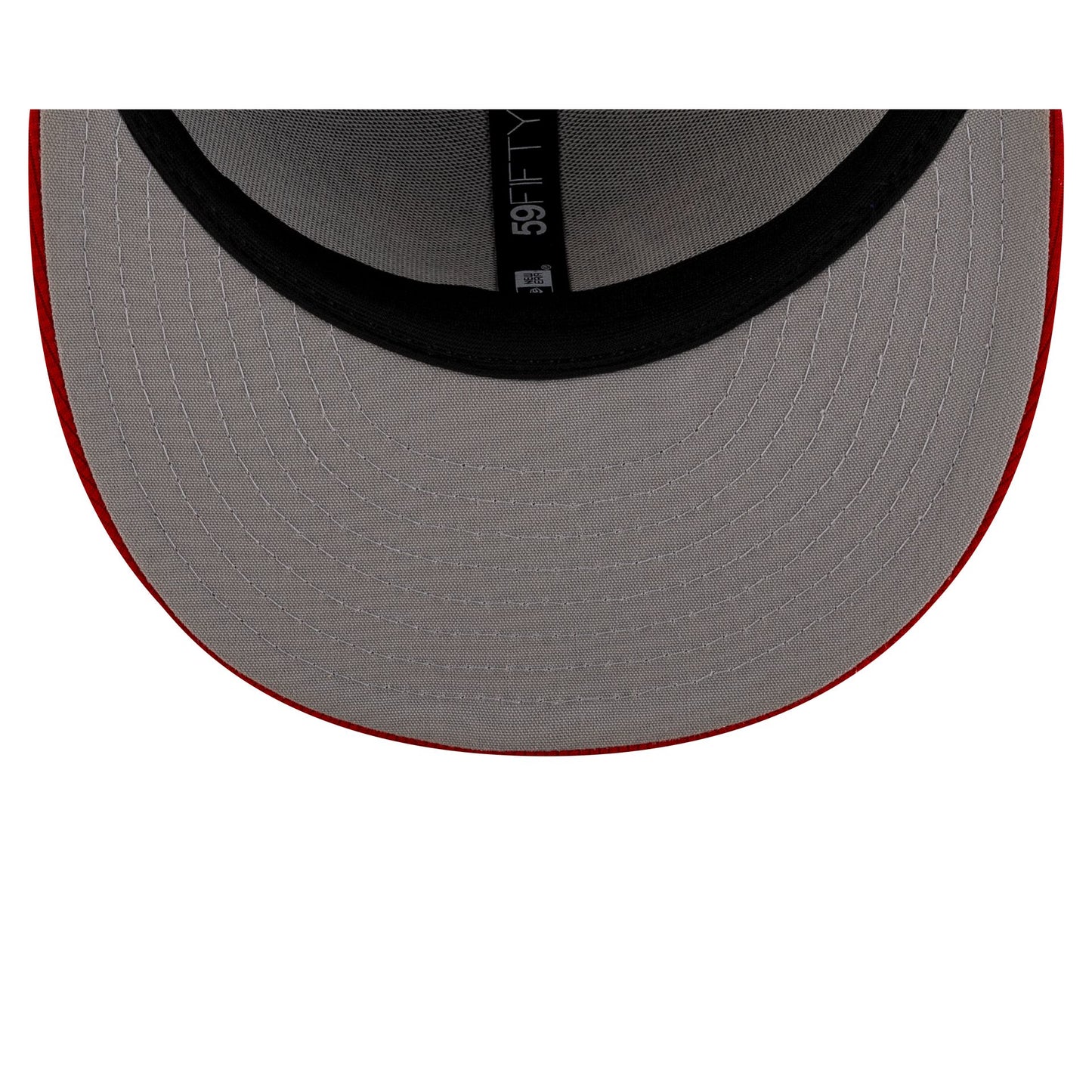 The USA Baseball 2025 Batting Practice 59FIFTY Fitted Cap features an embroidered USA Baseball logo at the front panels with an American flag at the rear and a gray undervisor.