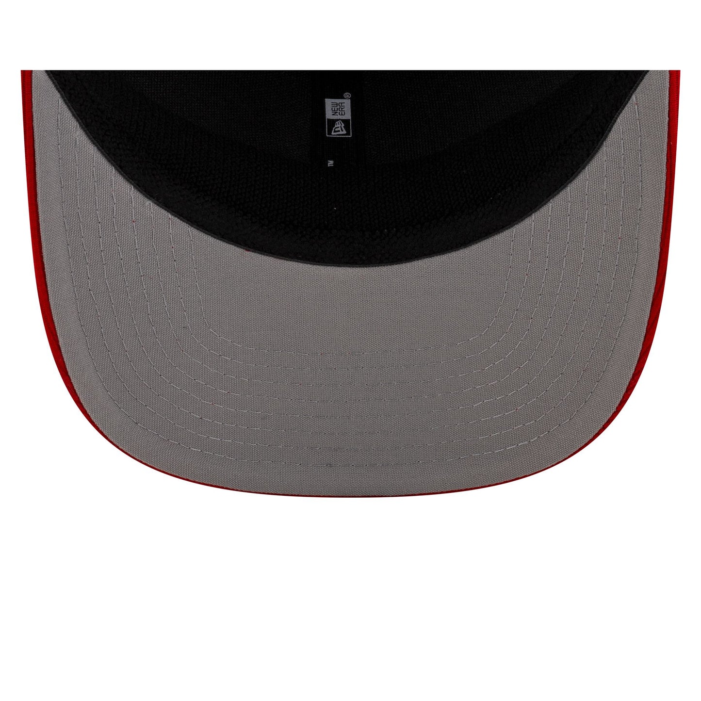 The USA Baseball 2025 Batting Practice 9SEVENTY Trucker Hat features an embroidered USA Baseball logo at the front panels with an American flag above a snapback closure at a mesh rear.