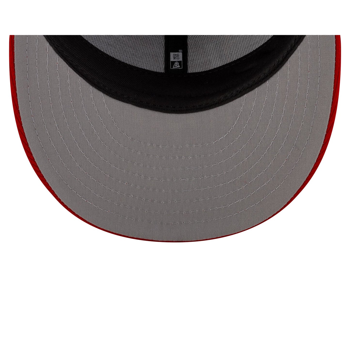 The USA Baseball 2025 Batting Practice Low Profile 59FIFTY Fitted Cap features an embroidered USA Baseball logo at the front panels with an American flag at the rear and a gray undervisor.