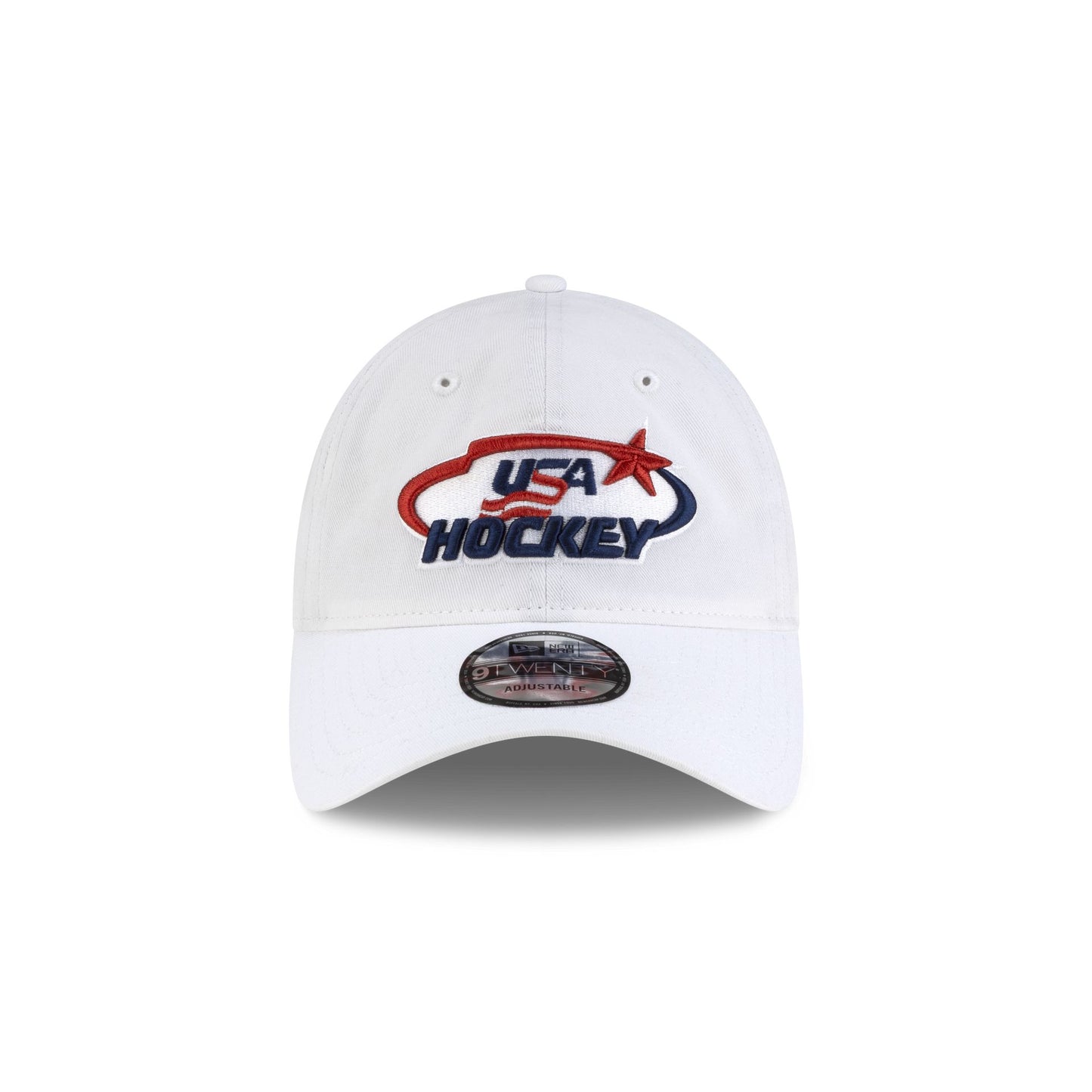 The USA Hockey Optic White 9TWENTY Adjustable Cap features an embroidered USA Hockey logo at the front panels with an adjustable D-Ring closure at the rear.