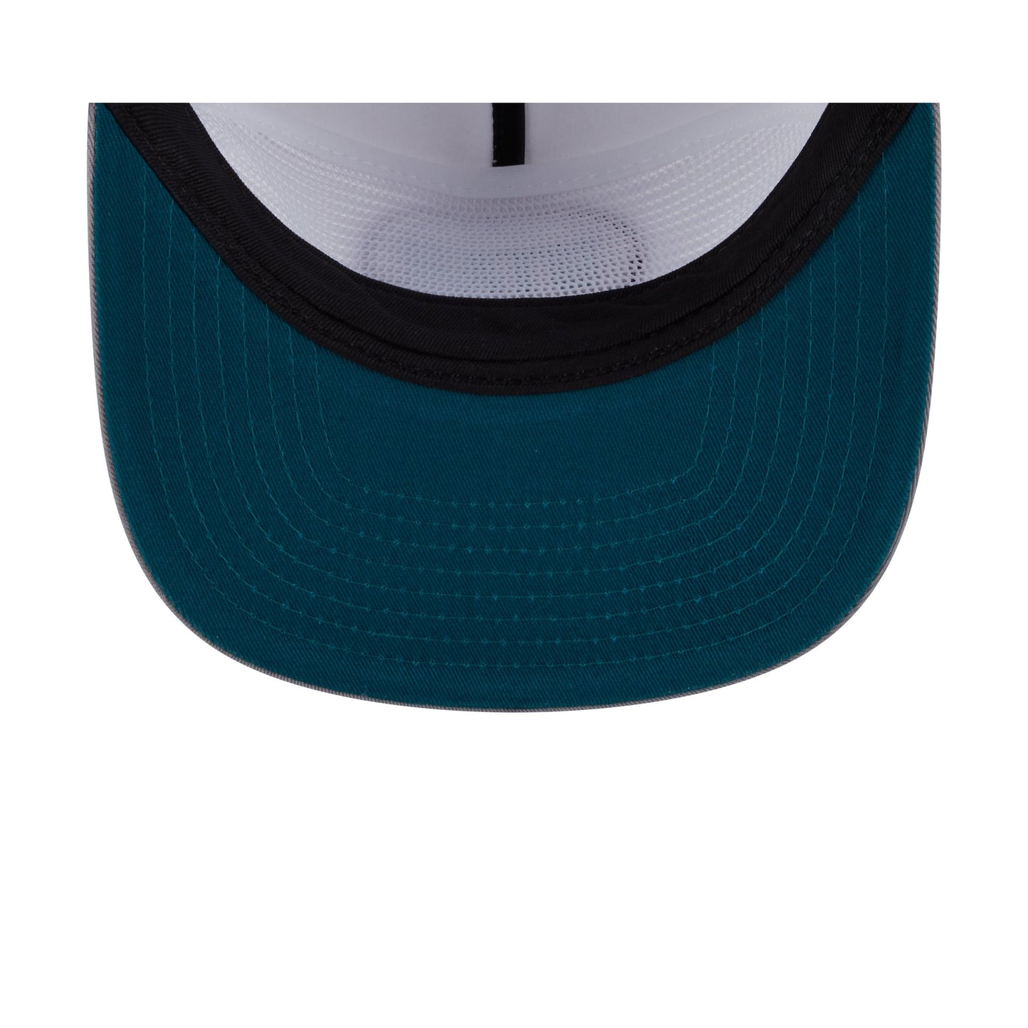 The Utah Hockey Club Optic White Golfer features an embroidered Utah Hockey Club logo at the front panels with a matching team wordmark at the right-wear side. Additional details include a snapback closure at the rear and a teal undervisor.