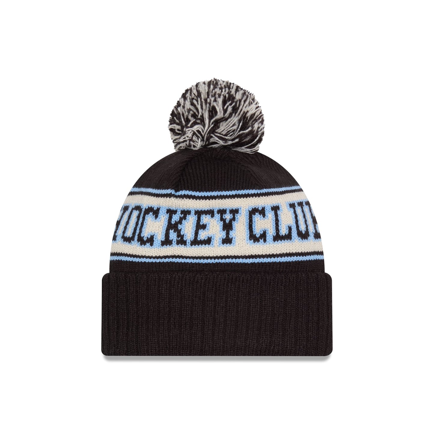 The Utah Hockey Club Pom Knit Hat features an embroidered Utah logo at the front cuff with a wordmark at the crown and a one-time removeable pom.