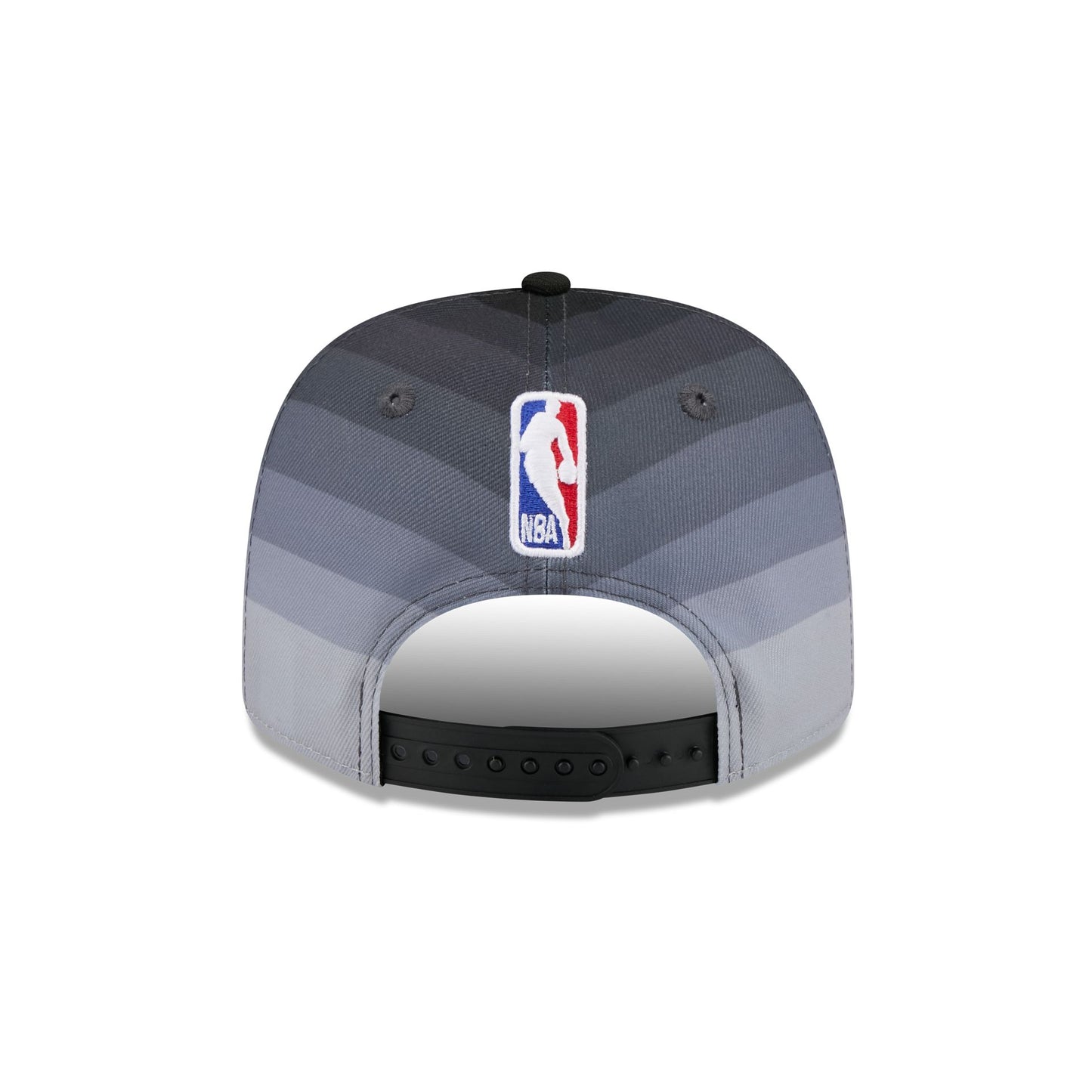 The Utah Jazz 2025 City Edition 9SEVENTY Stretch-Snap features an embroidered Jazz City Edition logo at the front panels with a logo at the right-wear side and a rope at the visor. Additional details include the NBA Logoman above an adjustable stretch-snap closure at the rear and a gray undervisor.