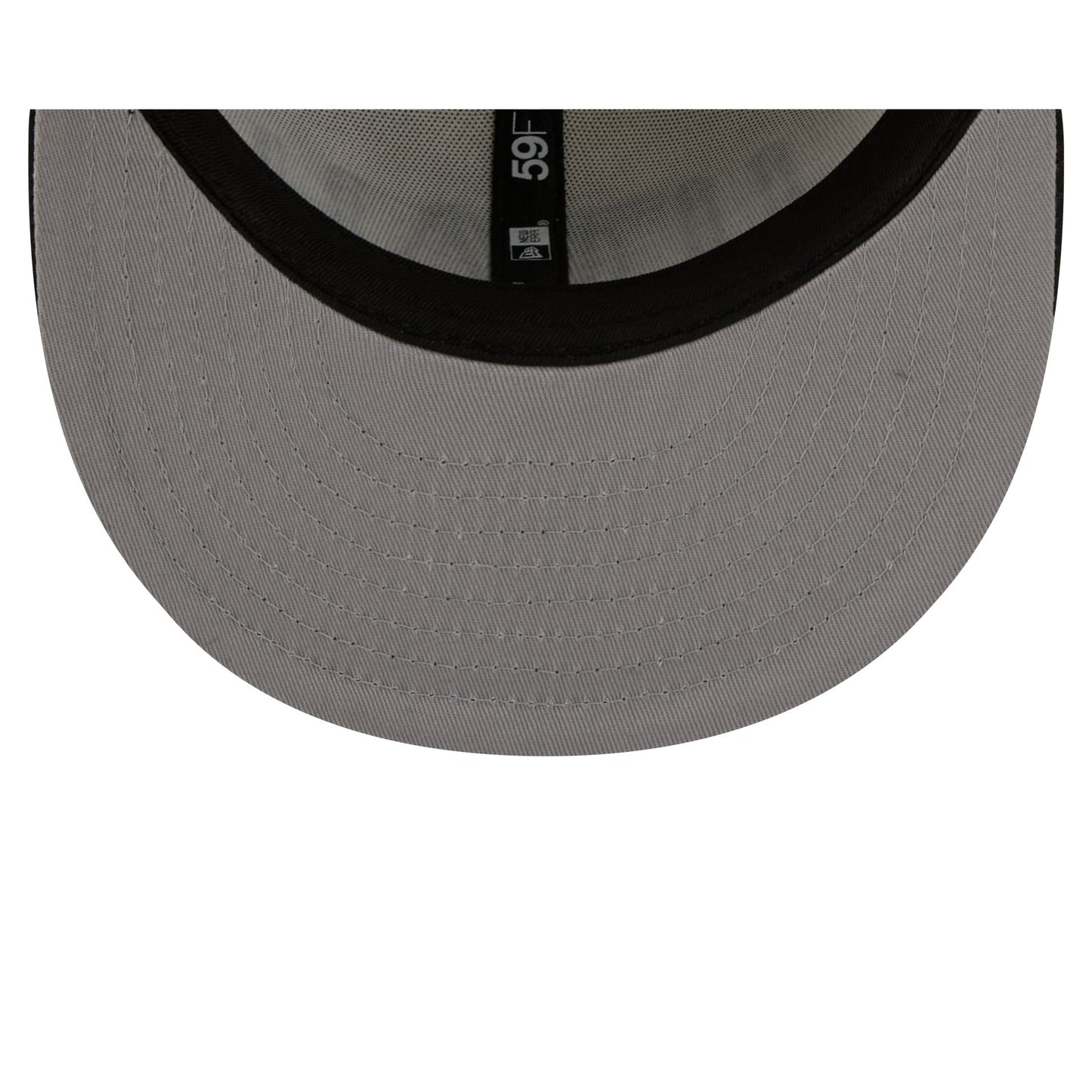 The Utah Jazz 2025 City Edition Chrome White Corduroy 59FIFTY Fitted Cap features an embroidered Jazz City Edition logo at the front panels with a City Edition jock tag stitched at the right-wear side. Additional details include a corduroy fabrication, the NBA Logoman at the rear, and a gray undervisor.