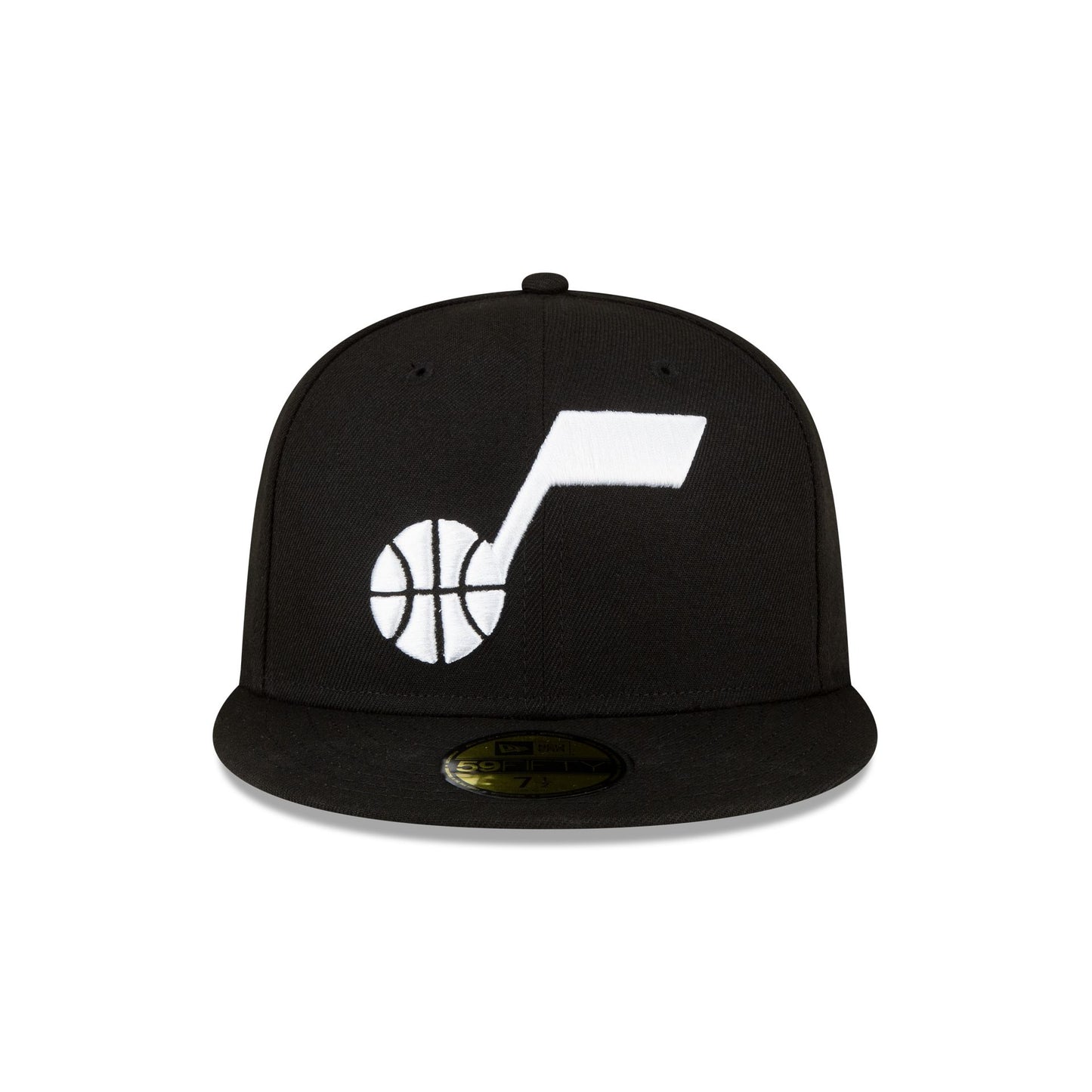 The Utah Jazz Basic 59FIFTY Fitted Cap features an embroidered Jazz logo at the front panels with a matching NBA Logoman at the rear and a gray undervisor.