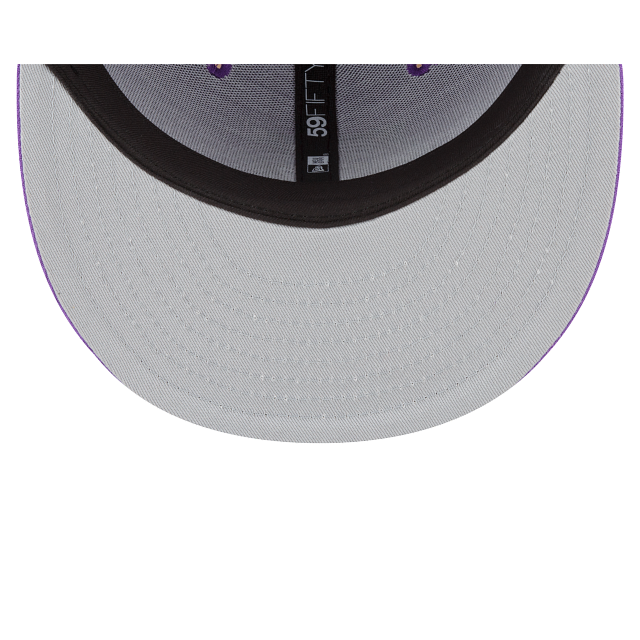 The Utah Jazz Classic Edition Purple 59FIFTY Fitted Cap features an embroidered Jazz wordmark at the front panels with a team patch at the right-wear side. Additional details include the official NBA Logoman at the rear and a gray undervisor.