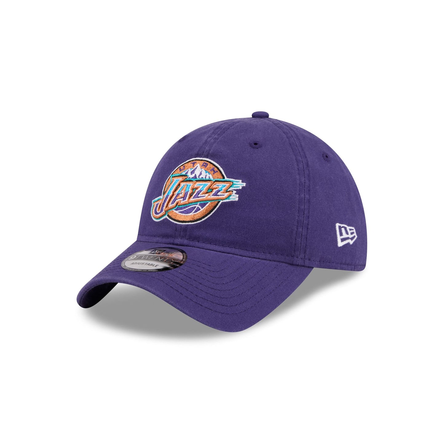 The Utah Jazz 1996-2004 Hardwood Classics 9TWENTY Adjustable Cap features an embroidered vintage Jazz logo at the front panels with a team tag on an adjustable D-Ring closure at the rear.