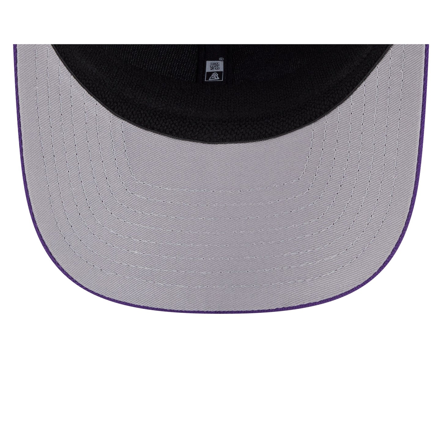 The Utah Jazz Team 9SEVENTY Stretch-Snap features an embroidered Jazz logo at the front panels with the NBA Logoman above an adjustable stretch-snap closure at the rear and a gray undervisor.