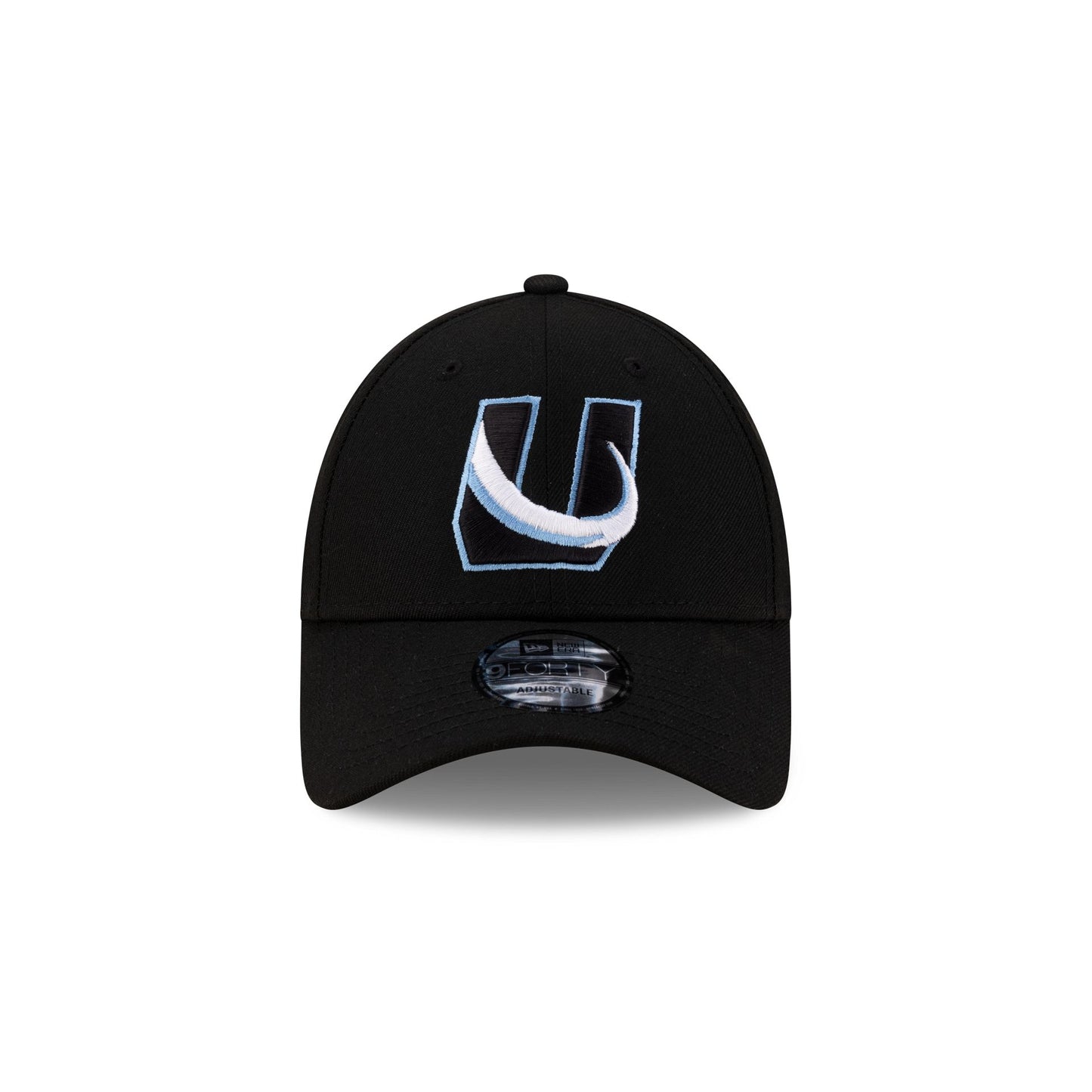 The Utah Mammoth Black 9FORTY Snapback features an embroidered Mammoth logo at the front panels with an adjustable hook-and-loop closure at the rear.