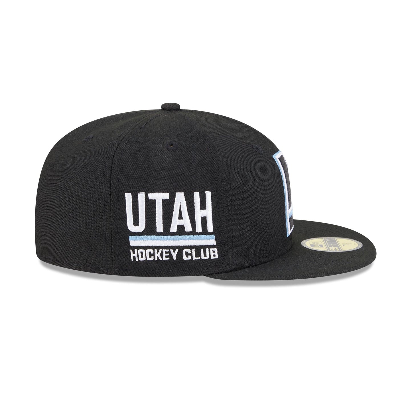 The Utah Mammoth Deceptor 59FIFTY Fitted Cap features an embroidered Mammoth deceptive logo at the front panels with a team logo at the right-wear side. Additional details include a wordmark at the rear, and a gray undervisor.