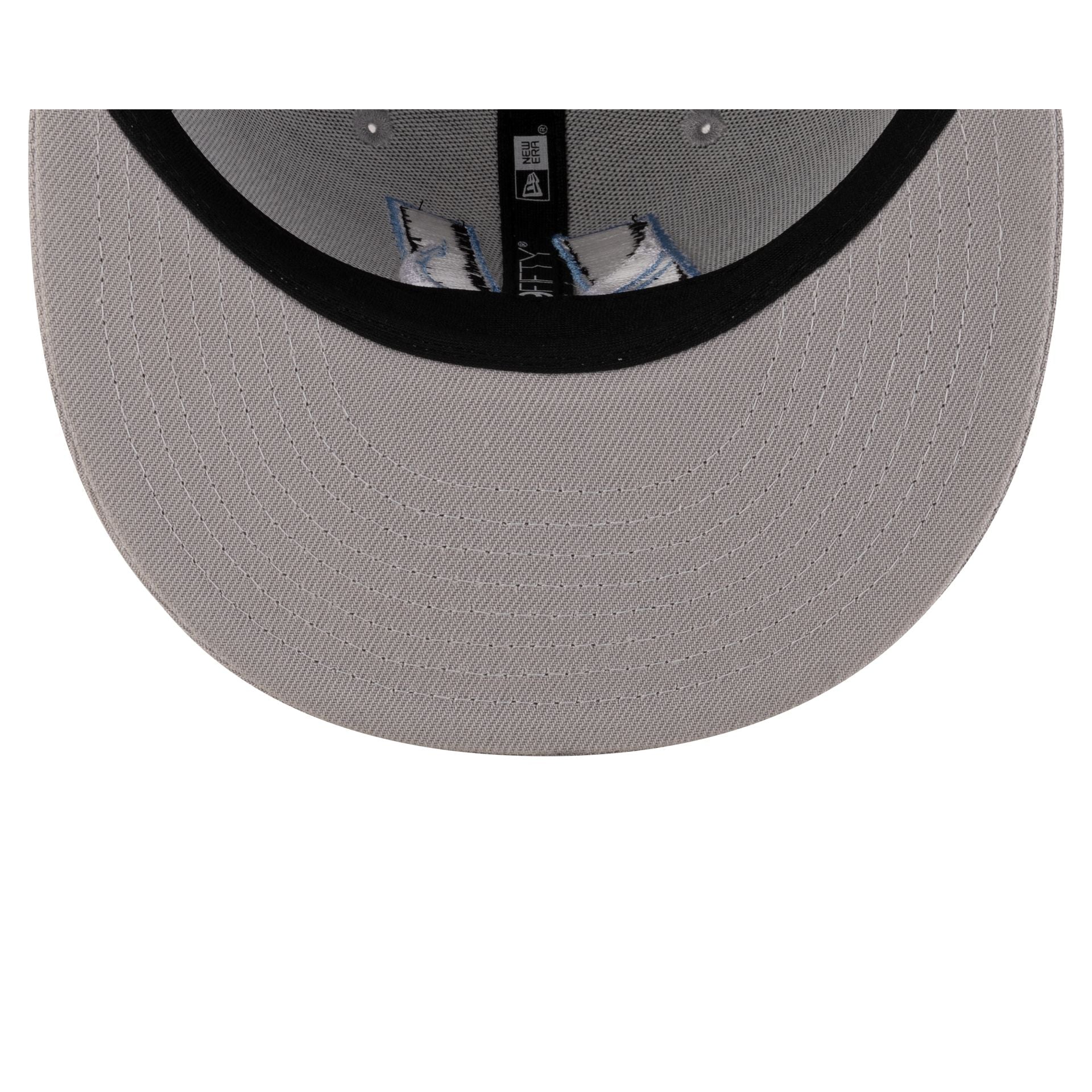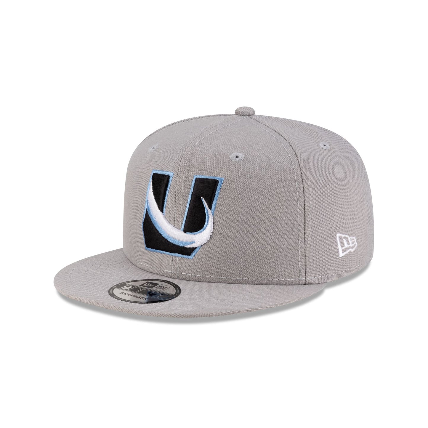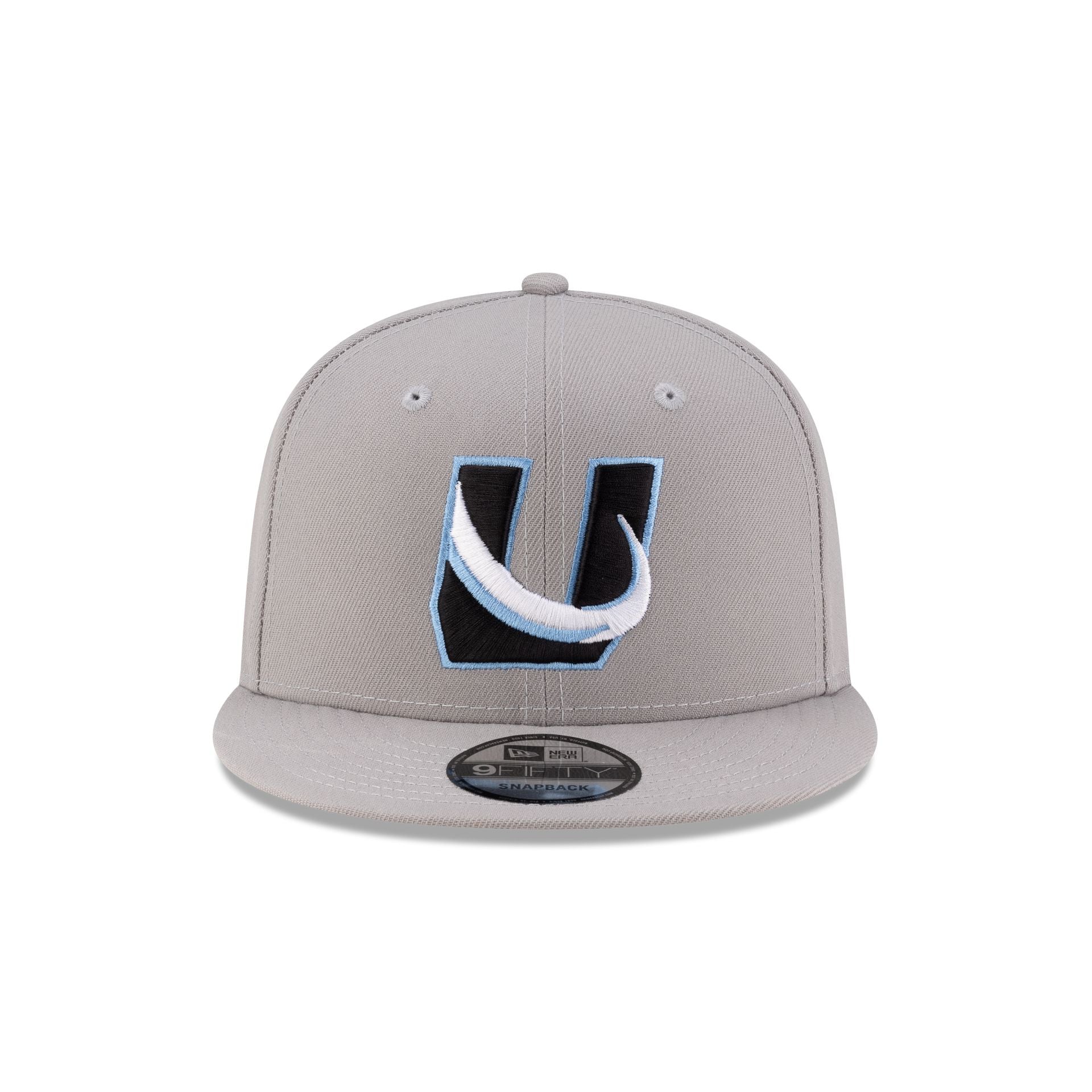 The Utah Mammoth Gray 9FIFTY Snapback features an embroidered Mammoth logo at the front panels with an adjustable snapback closure at the rear.