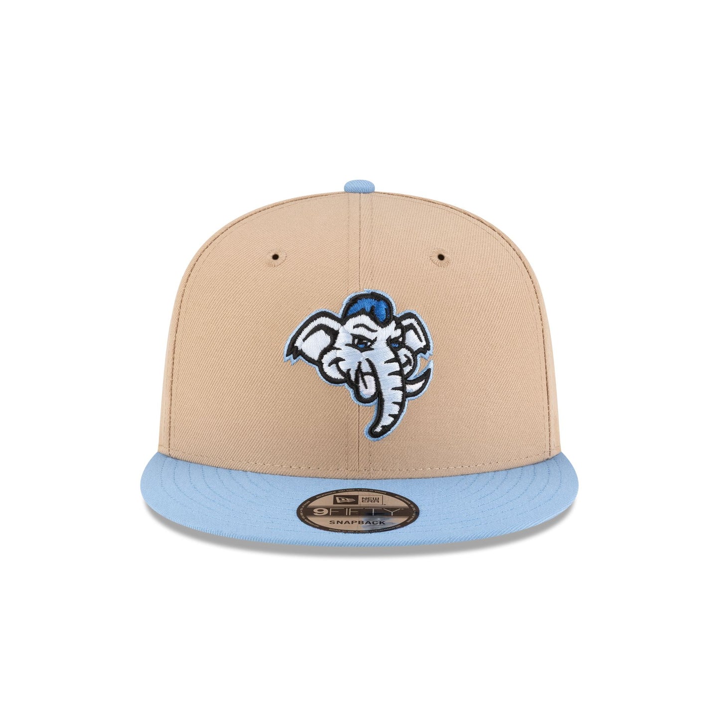 The Utah Mammoth Tusky 9FIFTY Snapback features an embroidered Mammoth mascot at the front panels with a Tuskey wordmark above and adjustable snapback closure at the rear and a cream undervisor.
