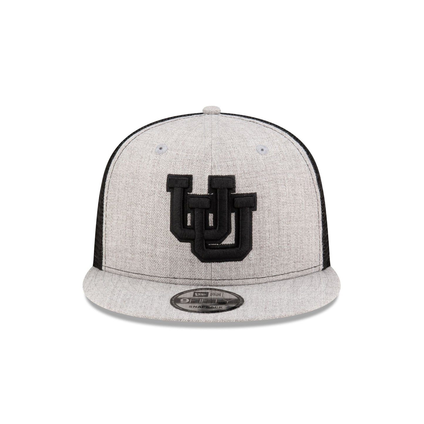 The Utah Utes Gray 9FIFTY Snapback features an embroidered Utes logo at the front panels with a mesh backed closure and a snapback closure at the rear.
