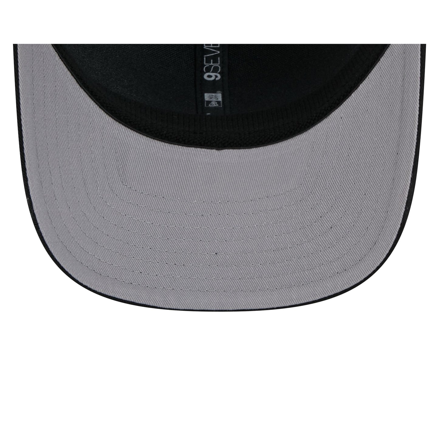 The Vancouver Canucks Black Team 9SEVENTY Trucker features an embroidered Canucks logo at the front panels with a woven team tag at a snapback closure at the rear and a gray undervisor.