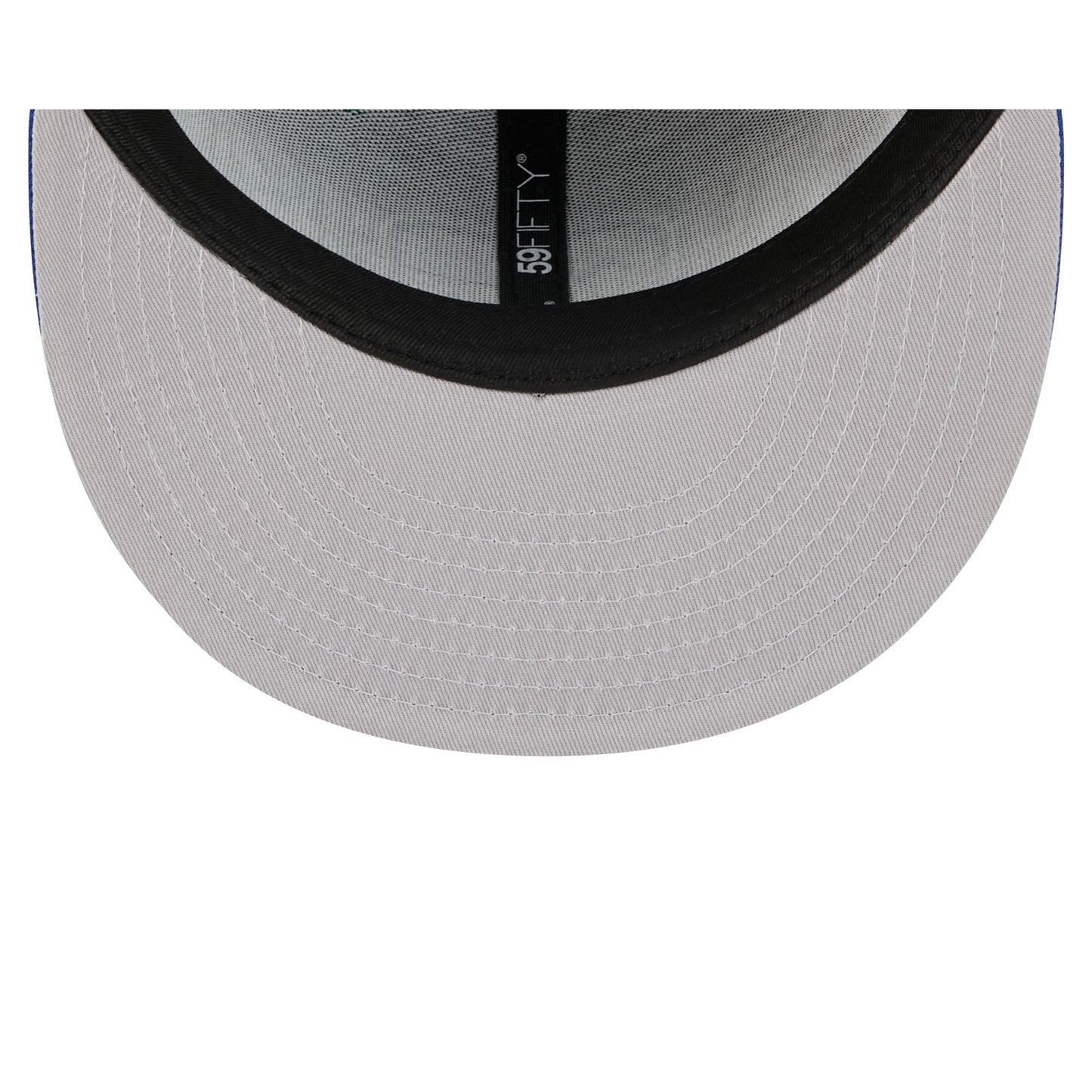 The Vancouver Canucks Bold Satin 59FIFTY Fitted Cap features an embroidered satin Canucks Historic graphic at the front panels with a satin fabrication throughout. Additional details include a matching Vintage Hockey logo at the rear and a gray undervisor.