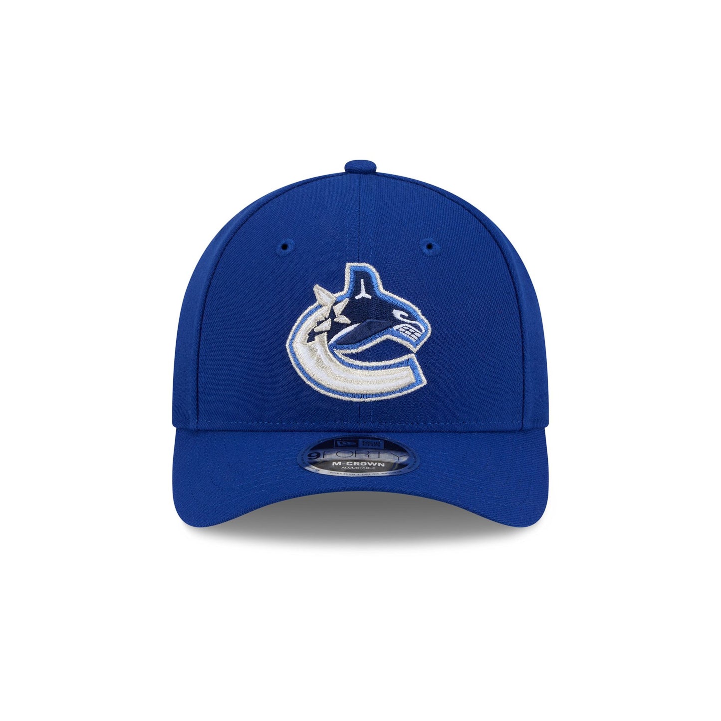 The Vancouver Canucks Team 9FORTY M-Crown Snapback features an embroidered Canucks logo at the front panels with the NHL Shield logo above an adjustable snapback closure at the rear and a gray undervisor.
