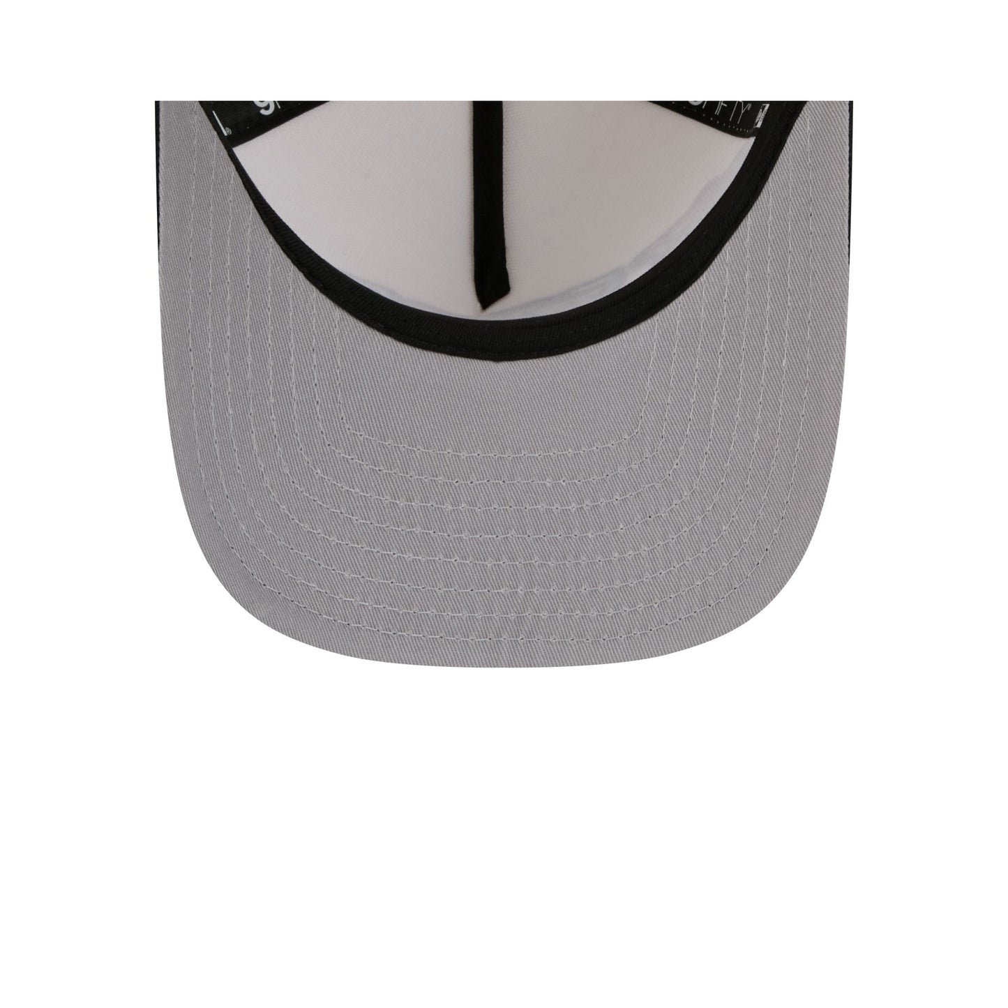 The Vancouver Grizzlies 1995-2001 Hardwood Classics Chrome White 9FIFTY A-Frame Snapback features an embroidered vintage Grizzlies logo at the front panels with a team graphic to the right. Additional details include an adjustable snapback closure at the rear and a gray undervisor.