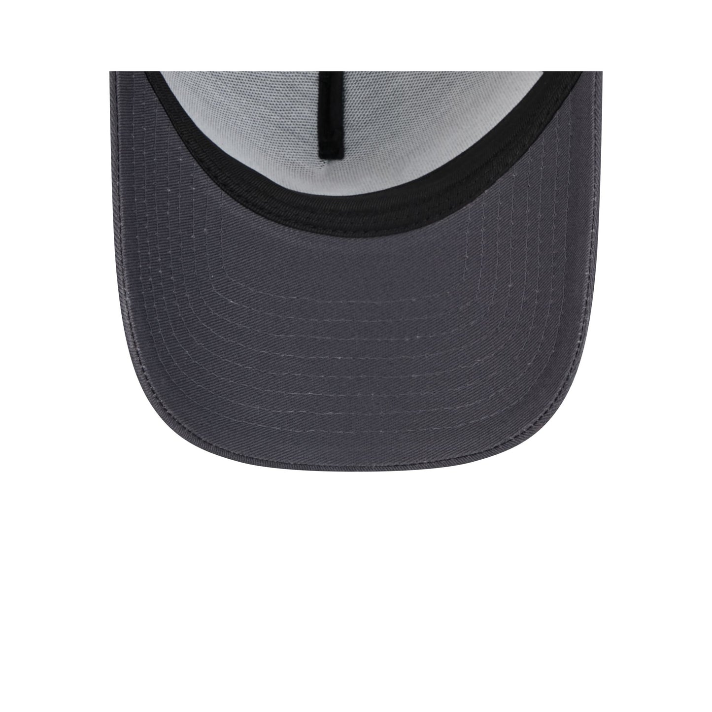 The Vegas Golden Knights 9FORTY A-Frame Trucker features an embroidered Golden Knights logo at the front panels with a mesh back and snapback closure at the rear.