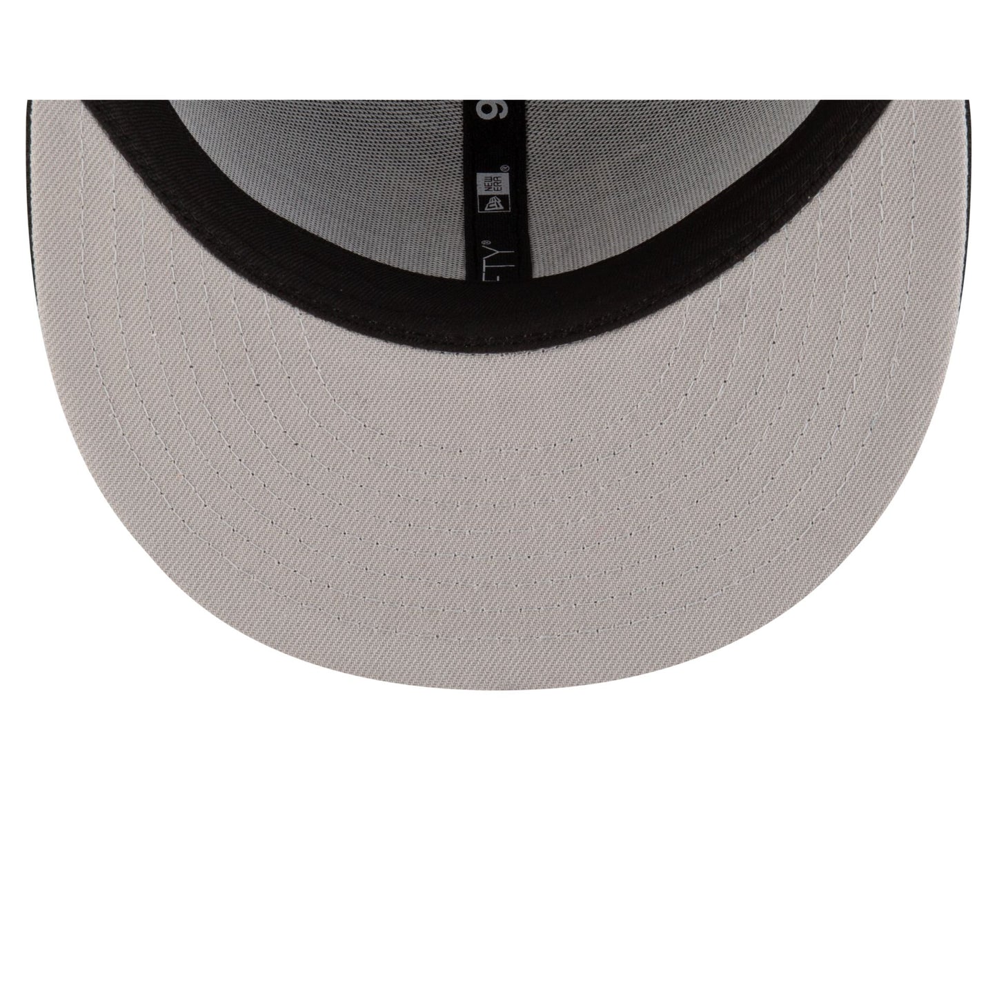 The Vegas Golden Knights Black 9FIFTY Snapback features an embroidered Golden Knights logo a the front panels with a snapback closure at the rear and a gray undervisor.